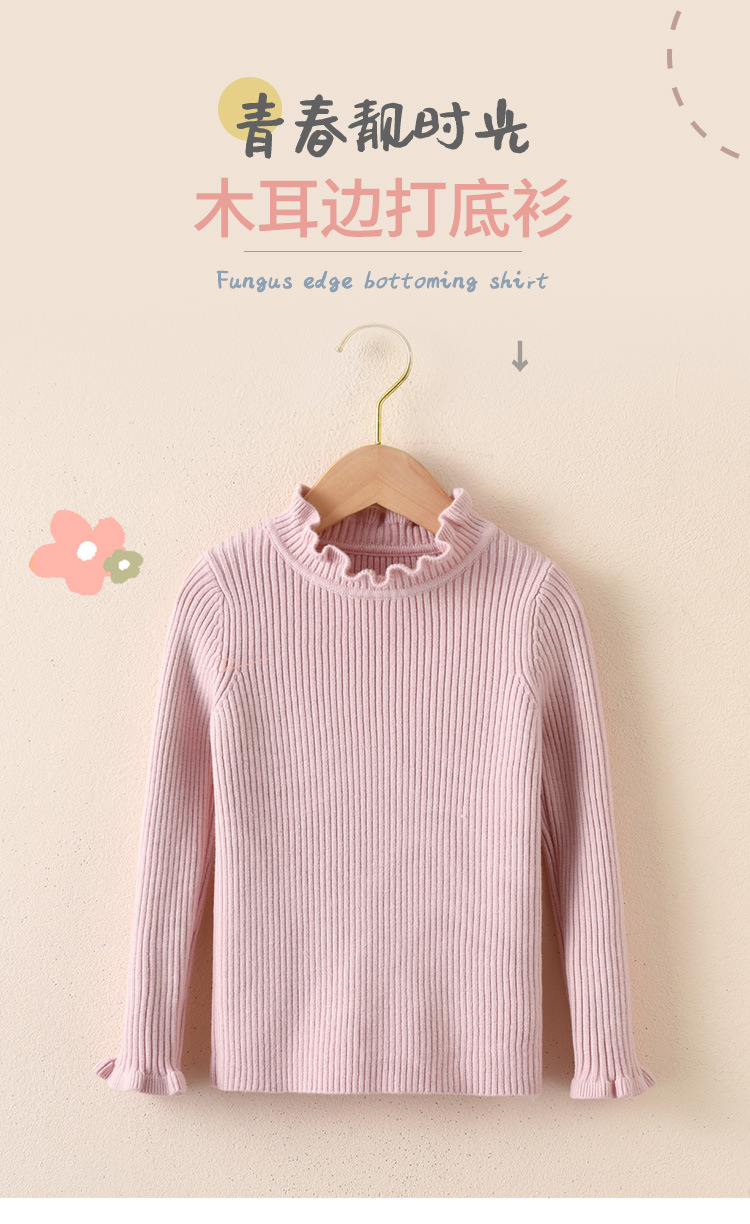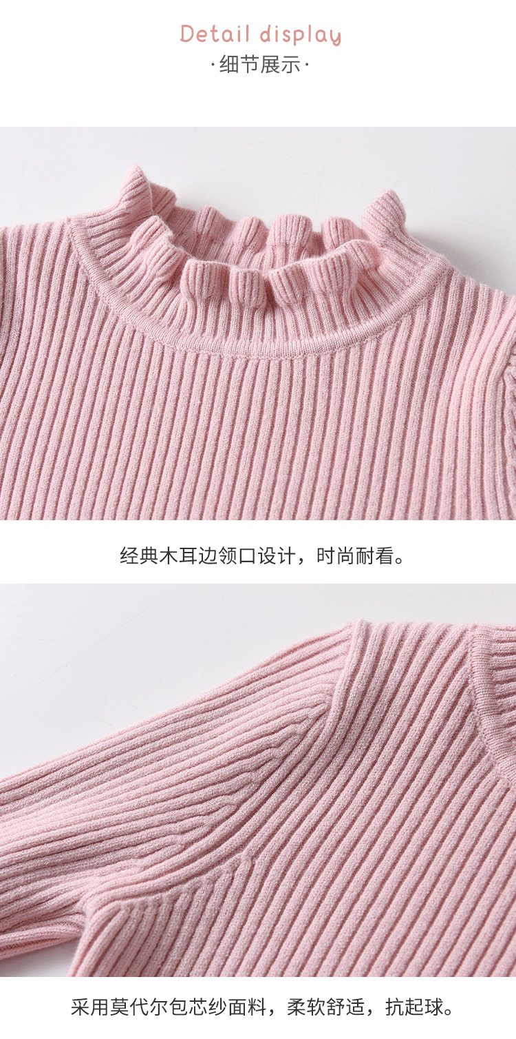 소녀 아기 귀 테두리베이스 니트 스웨터 2024 가을 및 겨울 소프트 왁스 한국식 올 매치 핏 스웨터스토어 가기