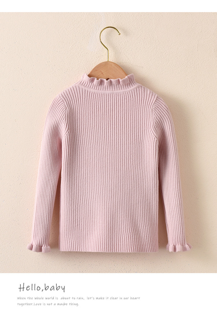 소녀 아기 귀 테두리베이스 니트 스웨터 2024 가을 및 겨울 소프트 왁스 한국식 올 매치 핏 스웨터