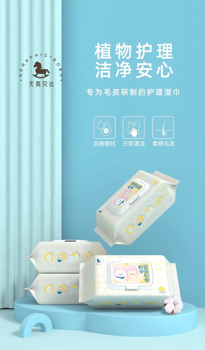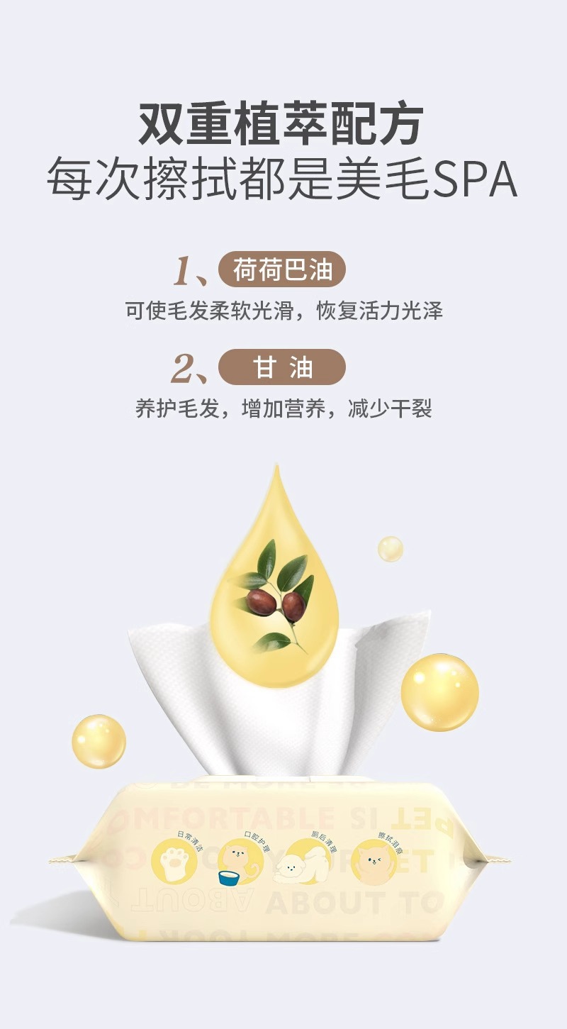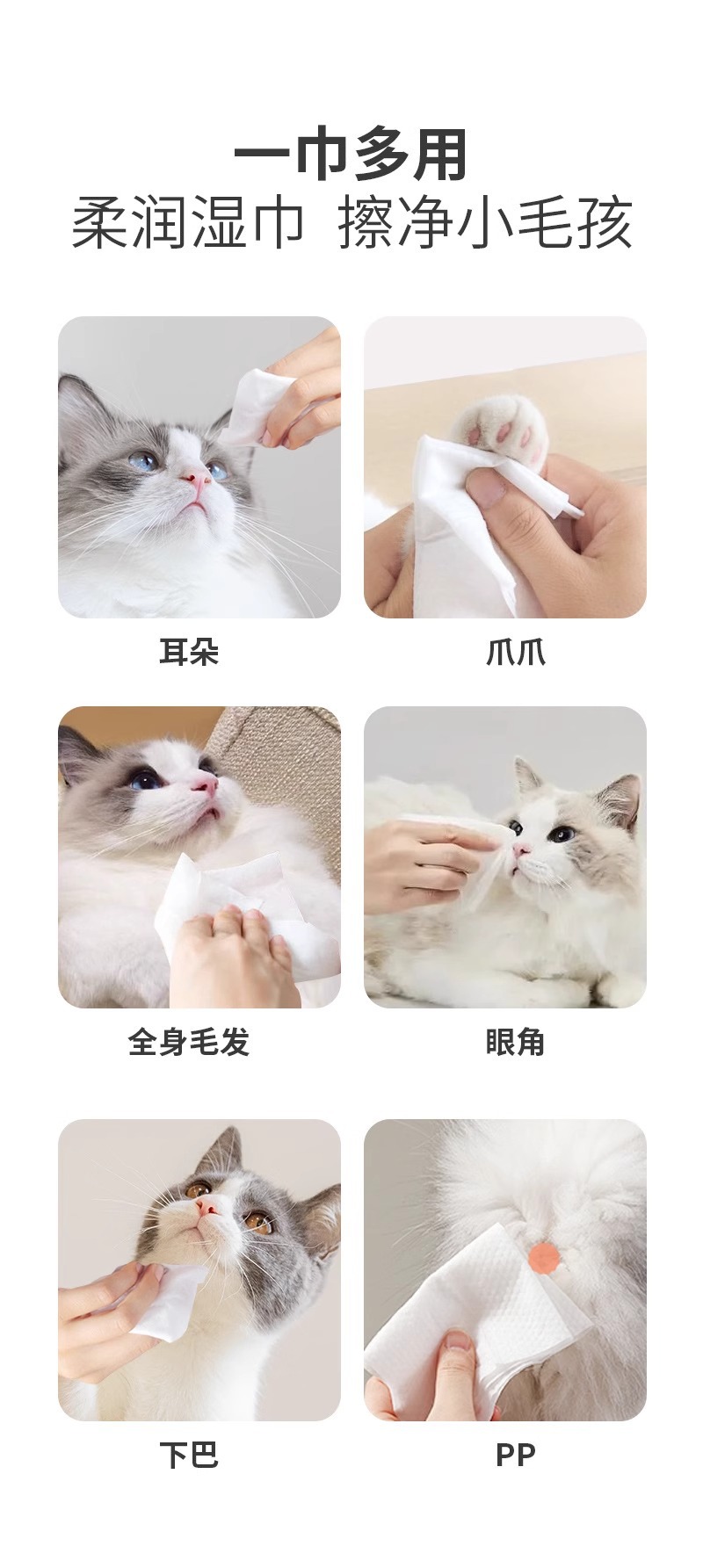 고양이와 개를위한 Naive Beibi 애완 동물 젖은 물티슈 특수 애완 동물 관리 세척 무료 청소 눈과 귀 젖은 물티슈 80 흡연스토어 가기