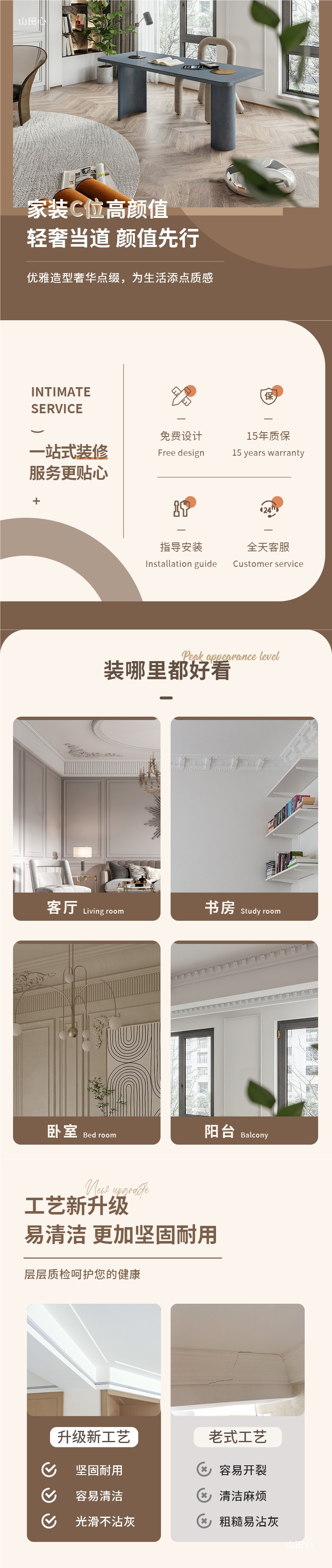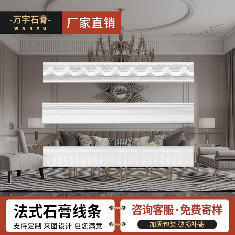 프랑스 석고 라인 장식 스트립 피아노 키 빨래판 천장 라인 TV 배경 벽 모델링 호랑이 머리 석고 라인스토어 가기