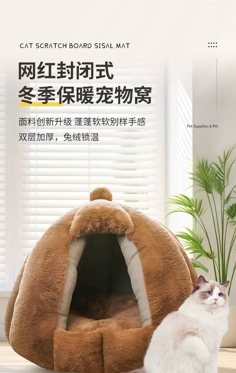 겨울 따뜻한 고양이 사육장 토끼 벨벳 작은 개 사육장 폐쇄 겨울 유르트 플러시 애완 동물 사육장스토어 가기