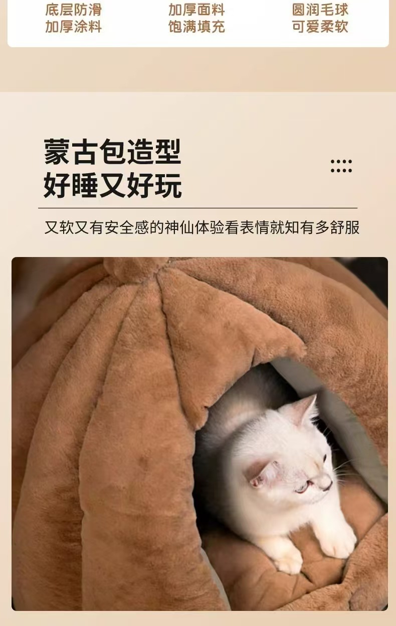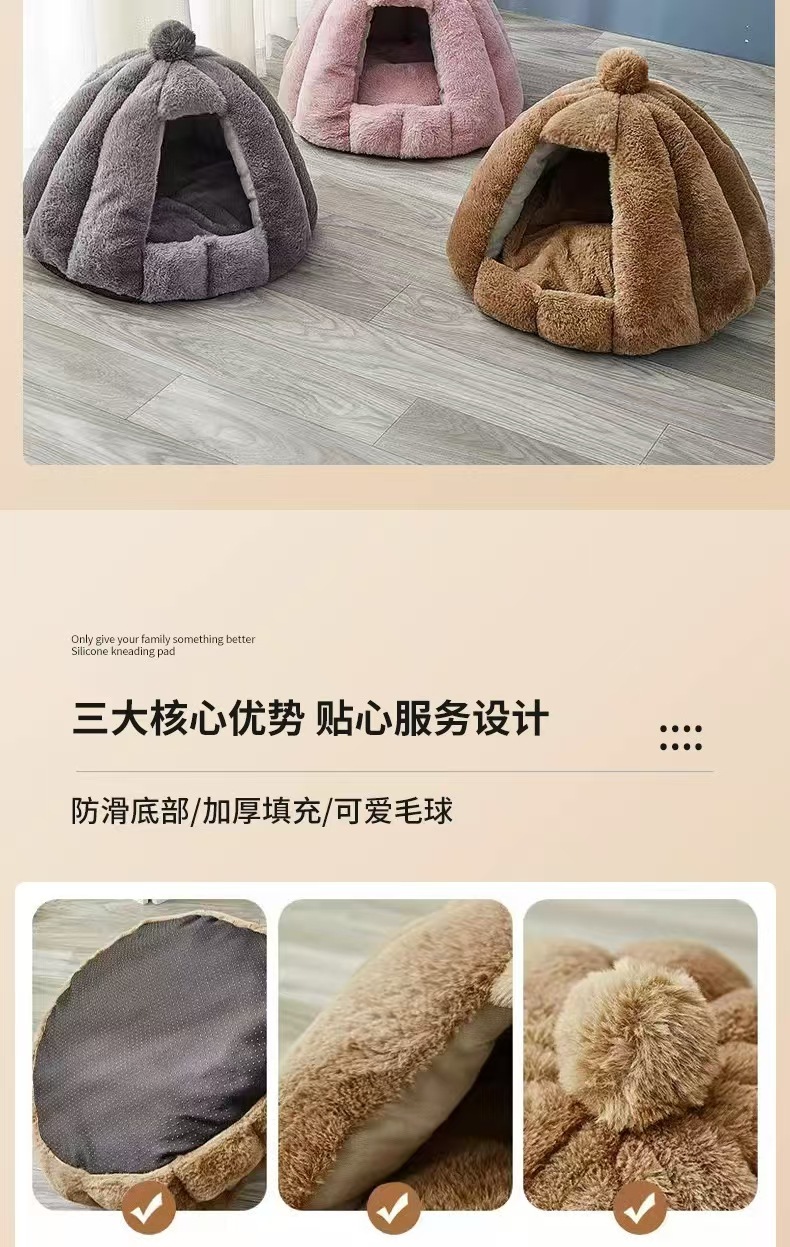 겨울 따뜻한 고양이 사육장 토끼 벨벳 작은 개 사육장 폐쇄 겨울 유르트 플러시 애완 동물 사육장