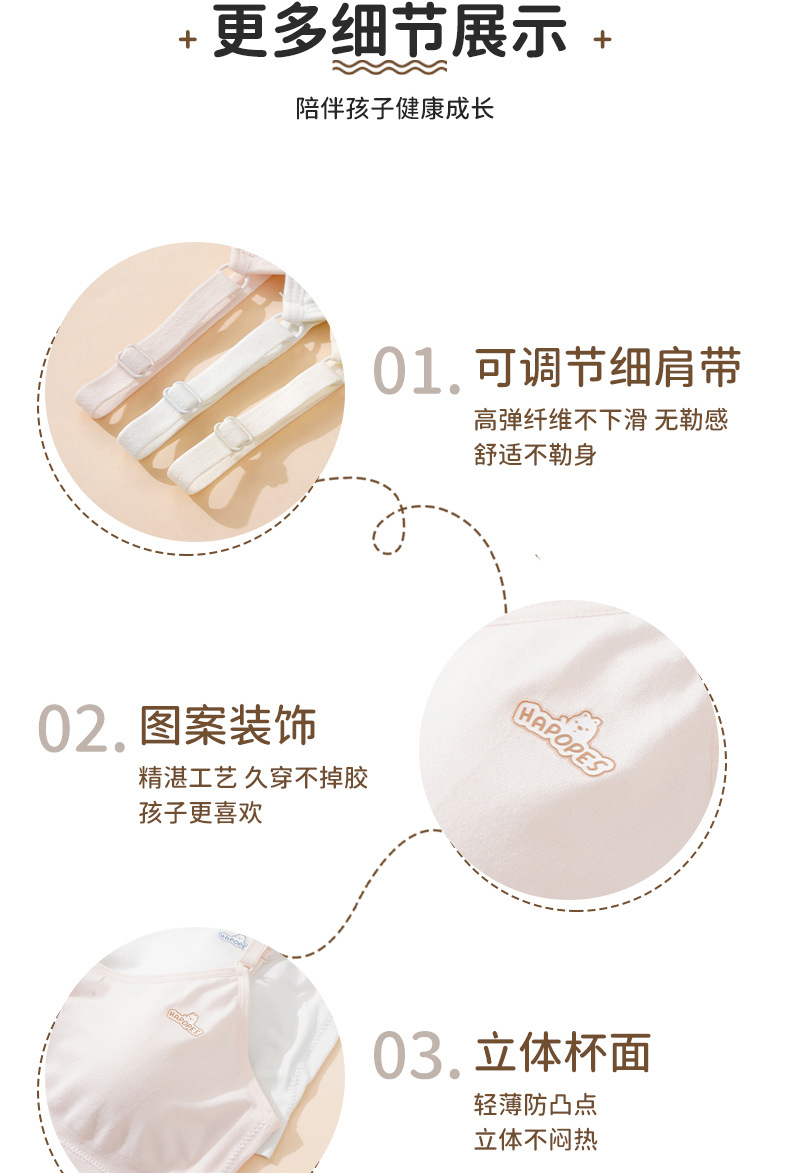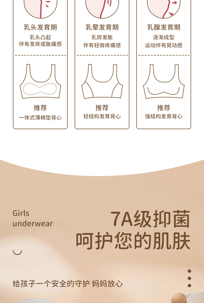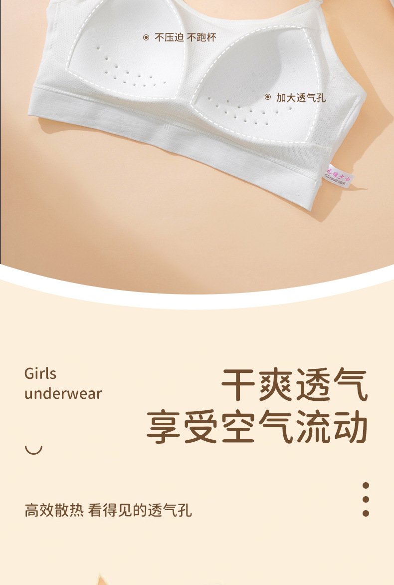 소녀 속옷 개발 단계 7A 항균 학생 고정 컵 높은 탄성 충격 방지 피부 친화적 인 부드러운 통기성 편안한 브래지어