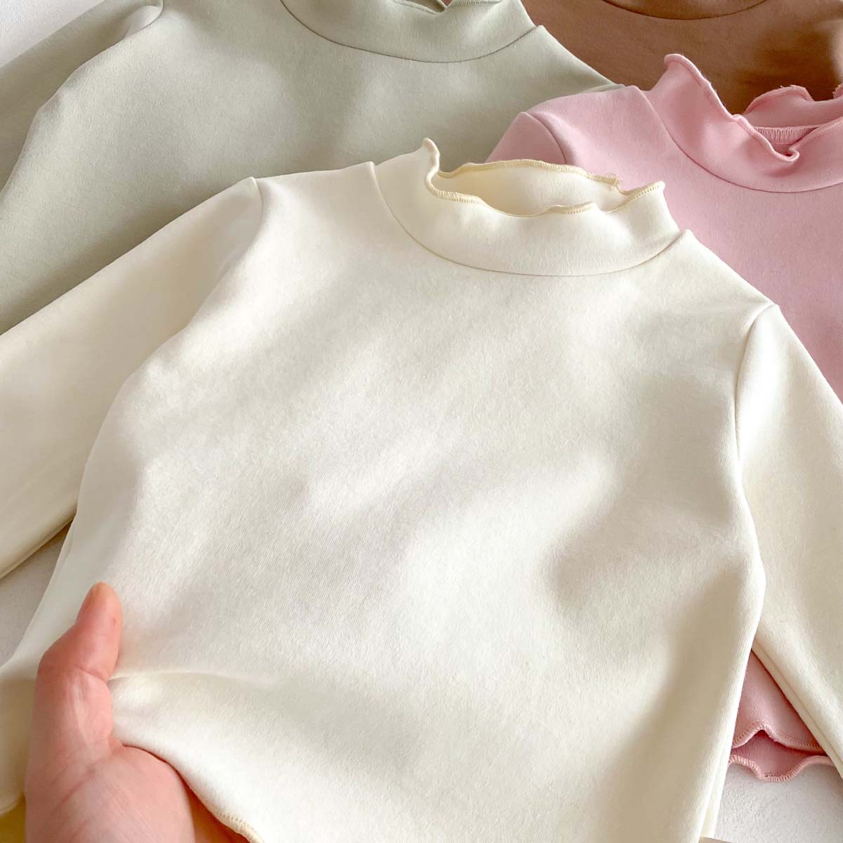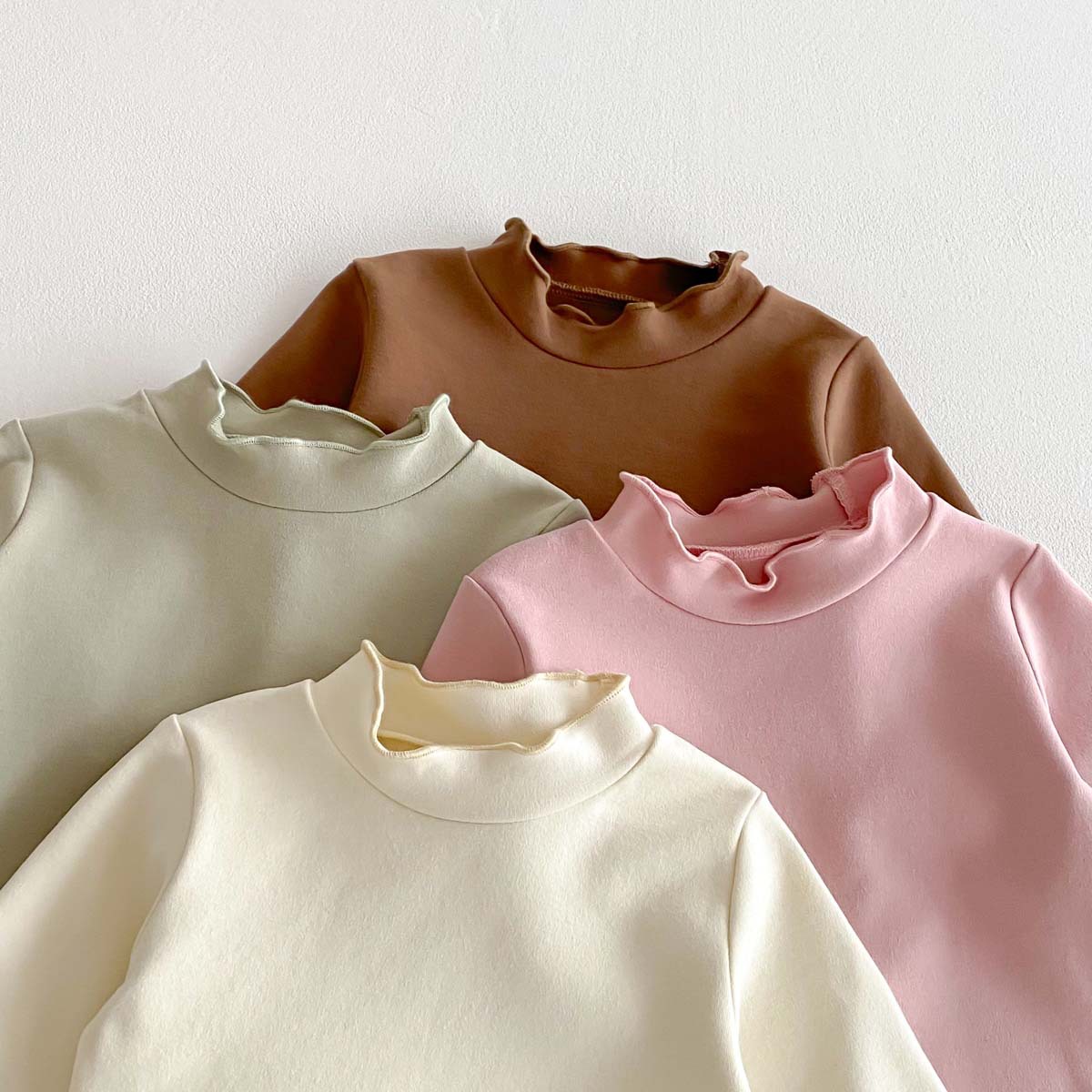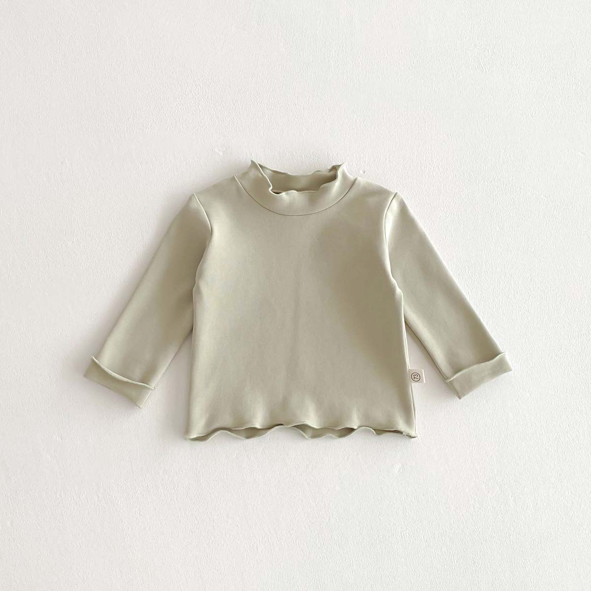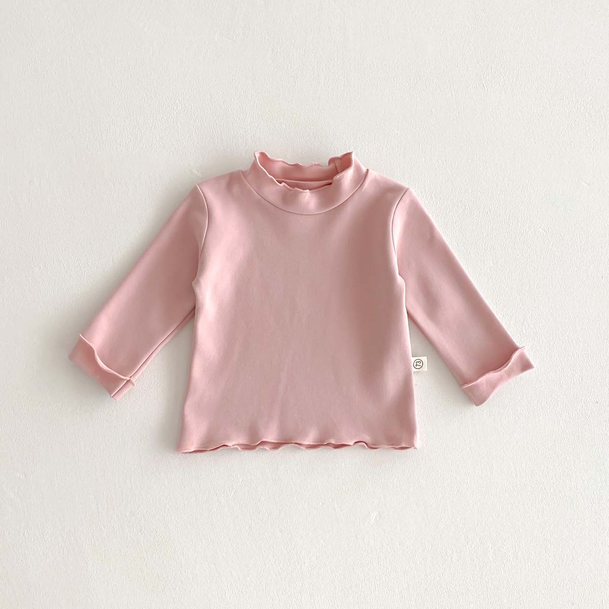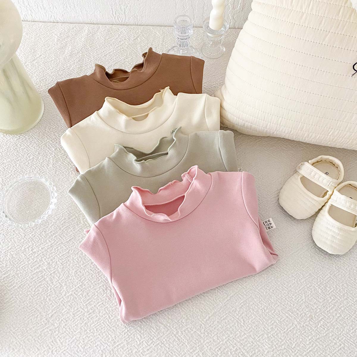 소녀들의 봄과 가을 새로운 한국식 솔리드 컬러 우드 이어 긴팔 베이스 셔츠 아기 달콤한 올 매치 탑 의상