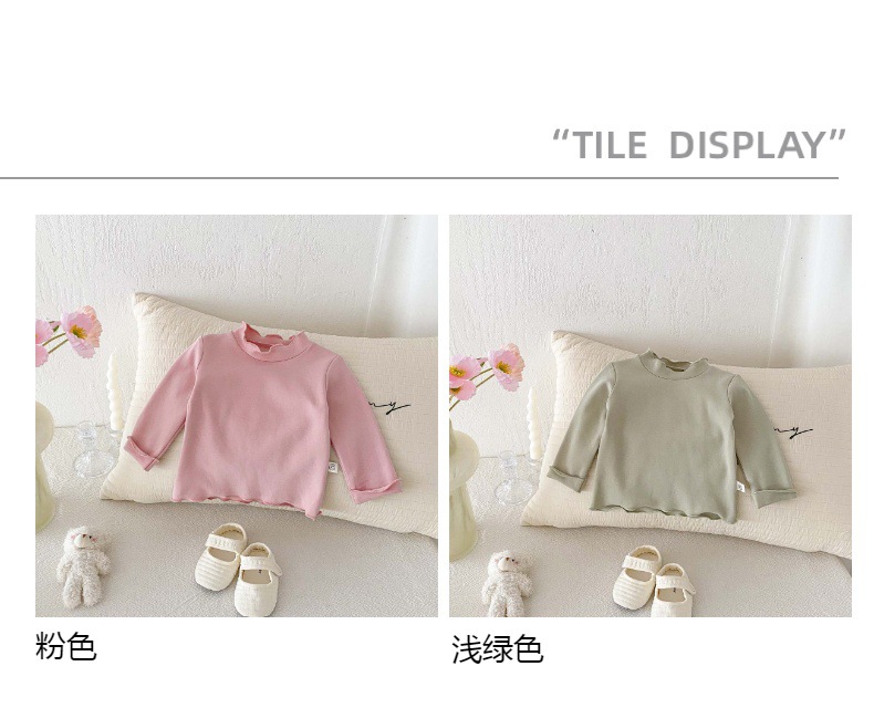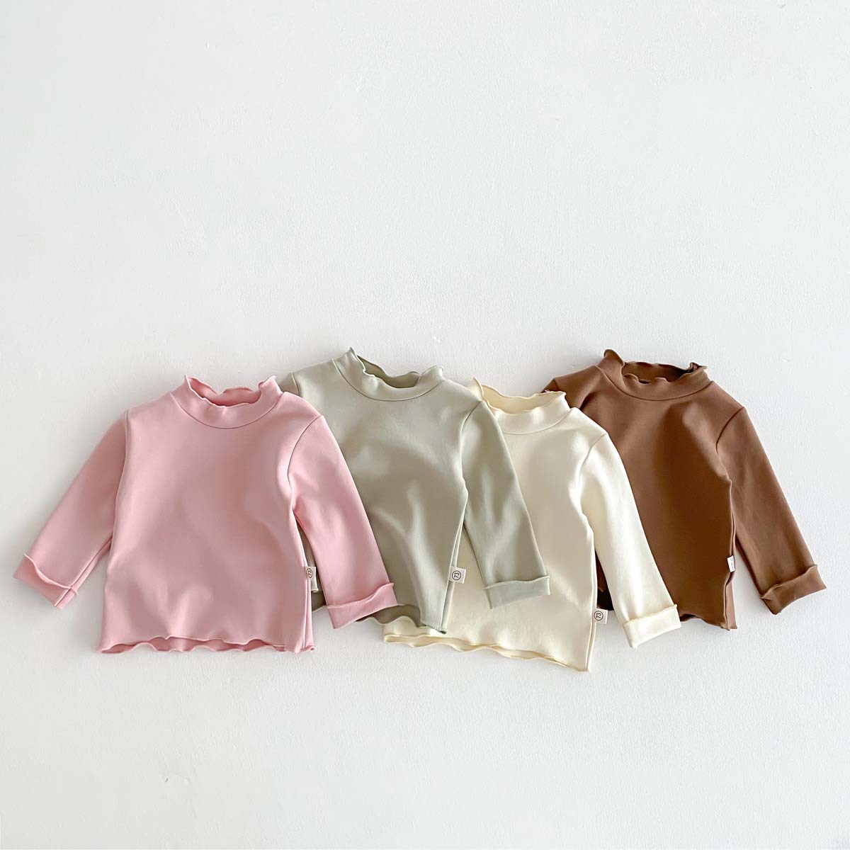 소녀들의 봄과 가을 새로운 한국식 솔리드 컬러 우드 이어 긴팔 베이스 셔츠 아기 달콤한 올 매치 탑 의상스토어 가기