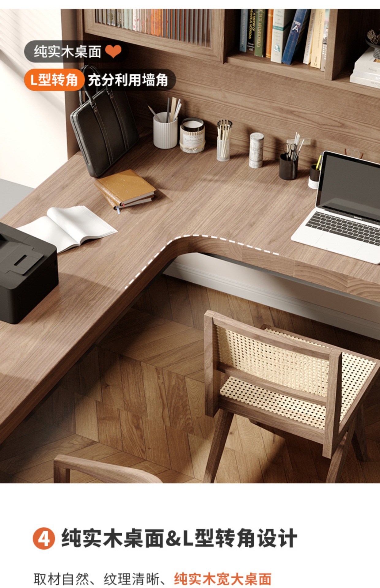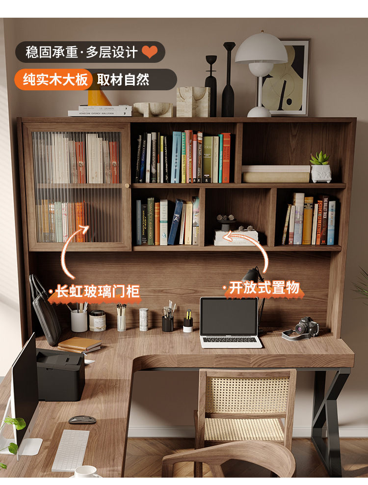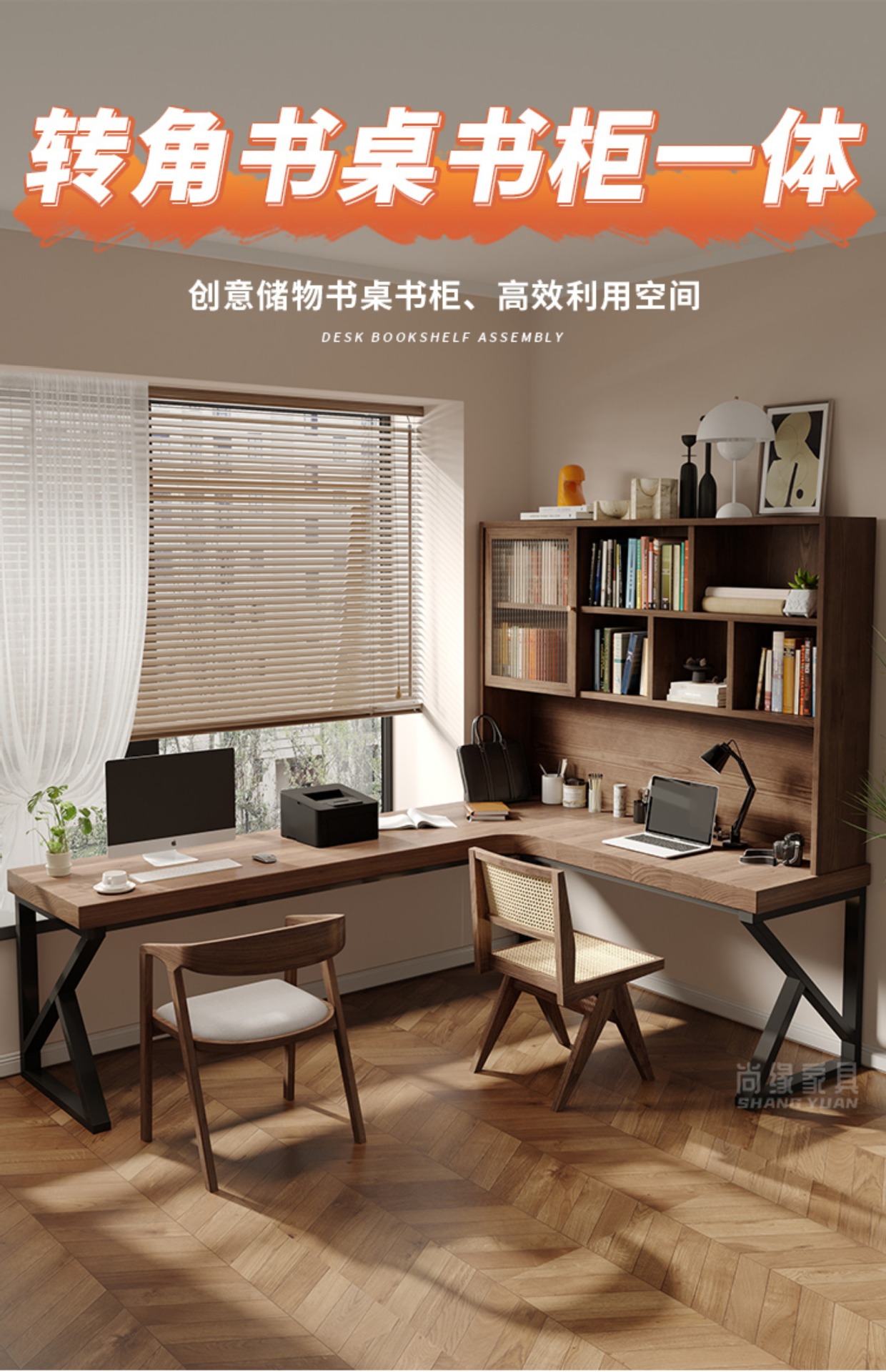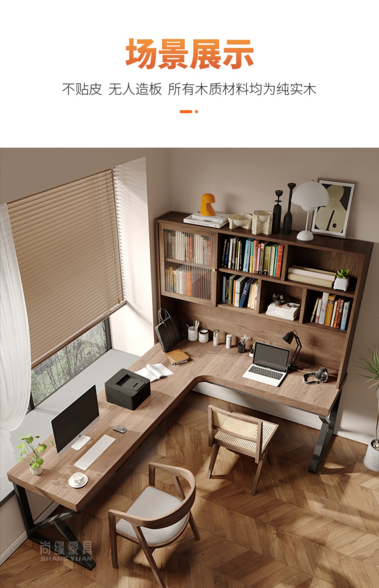 솔리드 우드 코너 책상 책장 가구 코너 더블 오피스 책상 연구 벽 L 자형 컴퓨터 책상 통합 책장스토어 가기