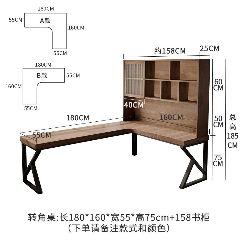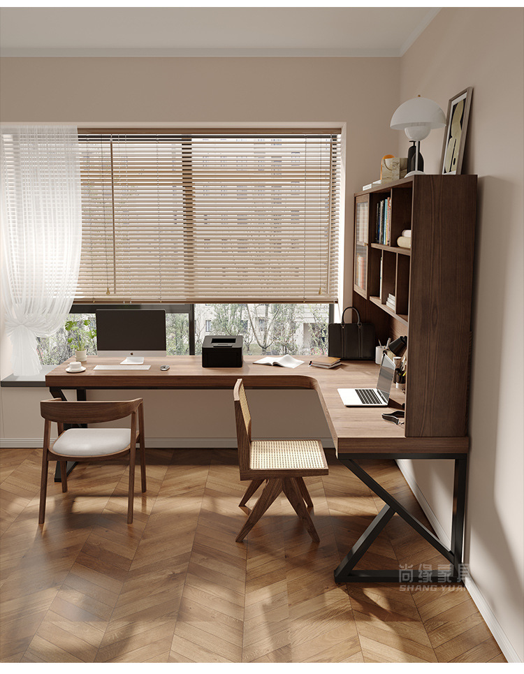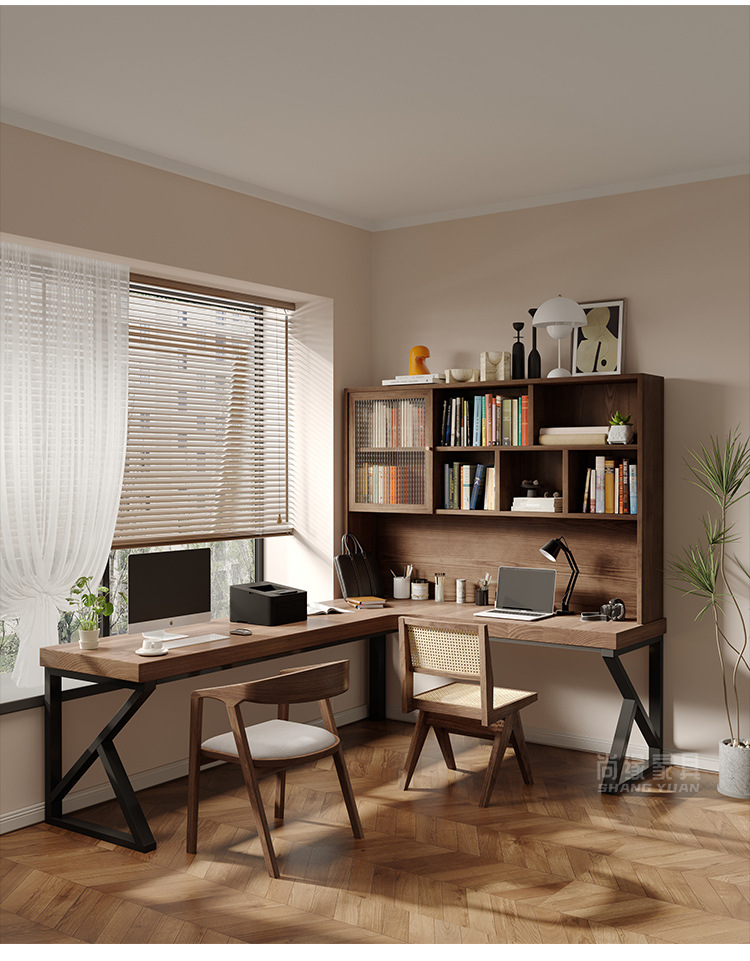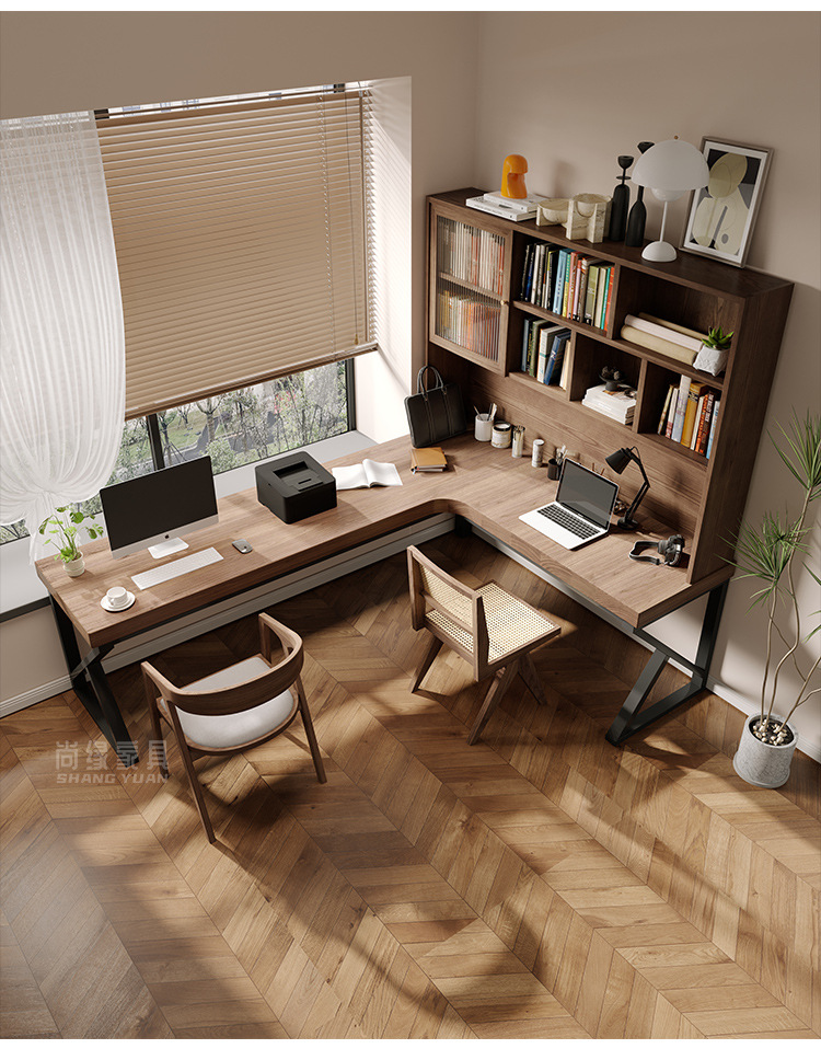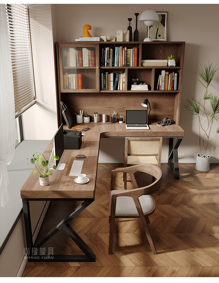 솔리드 우드 코너 책상 책장 가구 코너 더블 오피스 책상 연구 벽 L 자형 컴퓨터 책상 통합 책장
