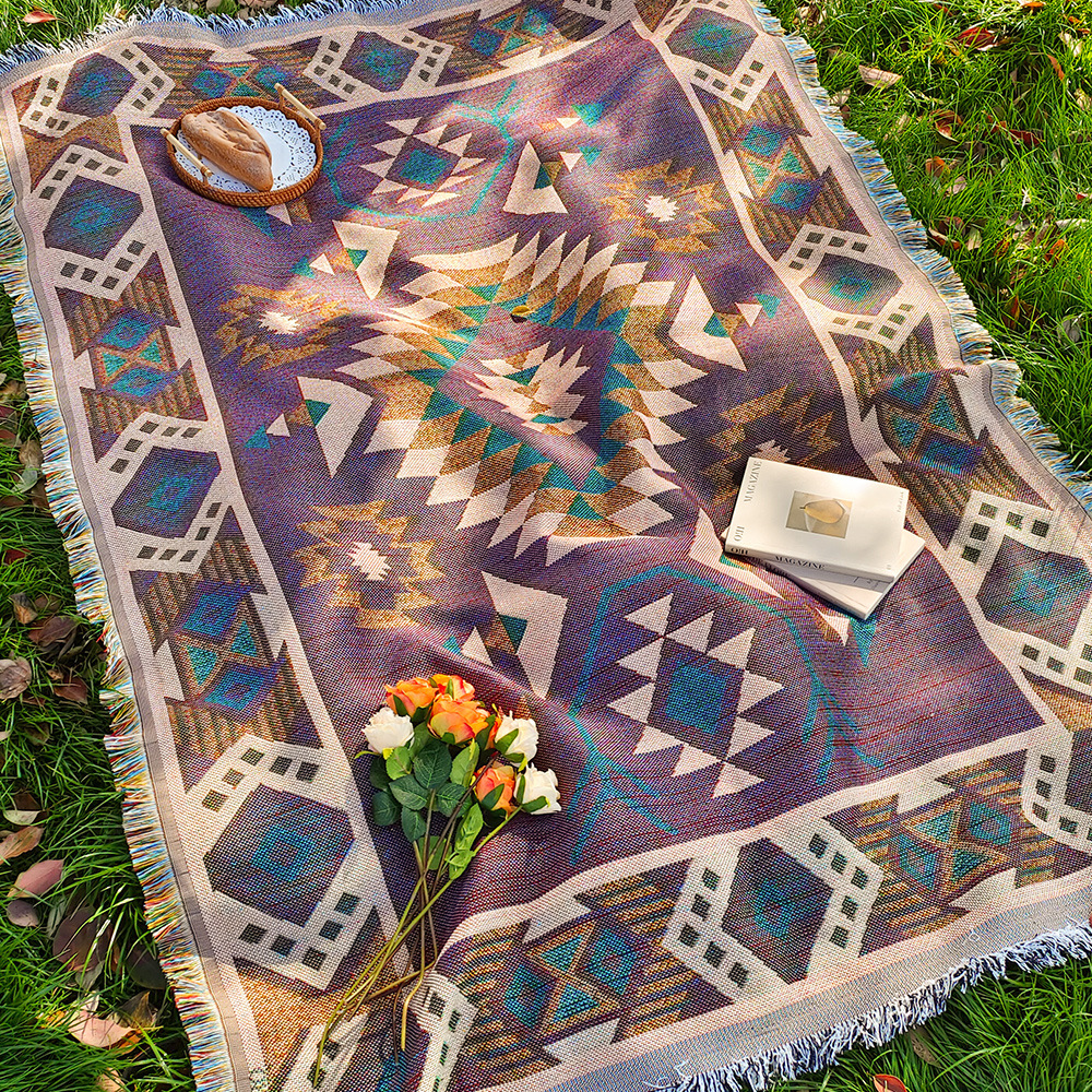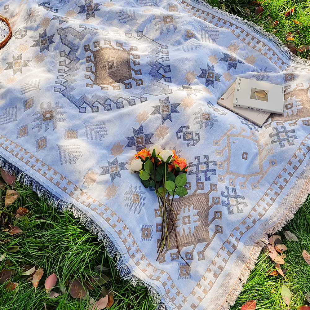 모로코 기하학 야외 캠핑 담요 잔디 매트 코튼 원사 짠 낮잠 커버 담요 텐트 습기 방지 피크닉 매트
