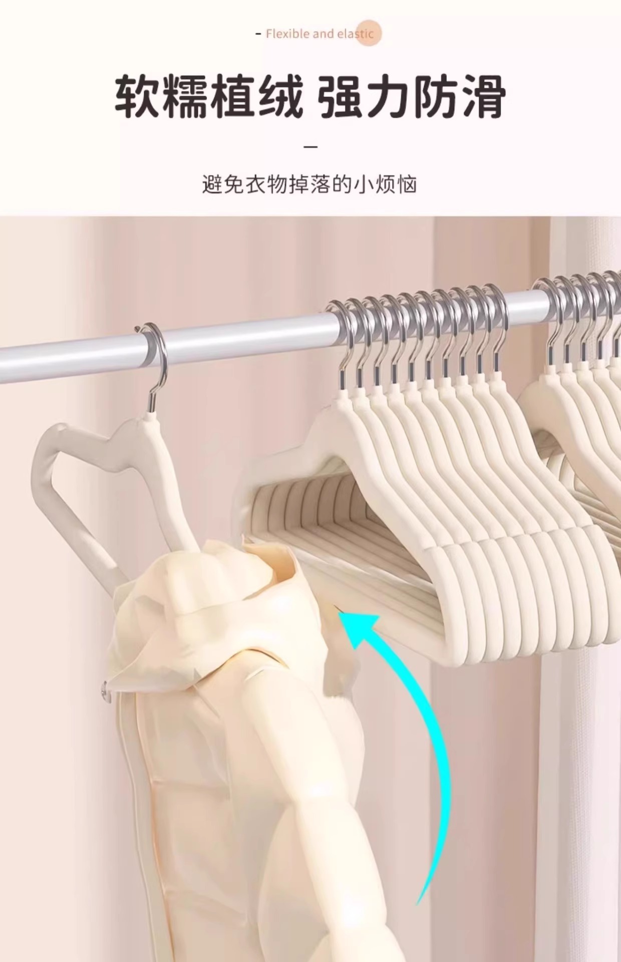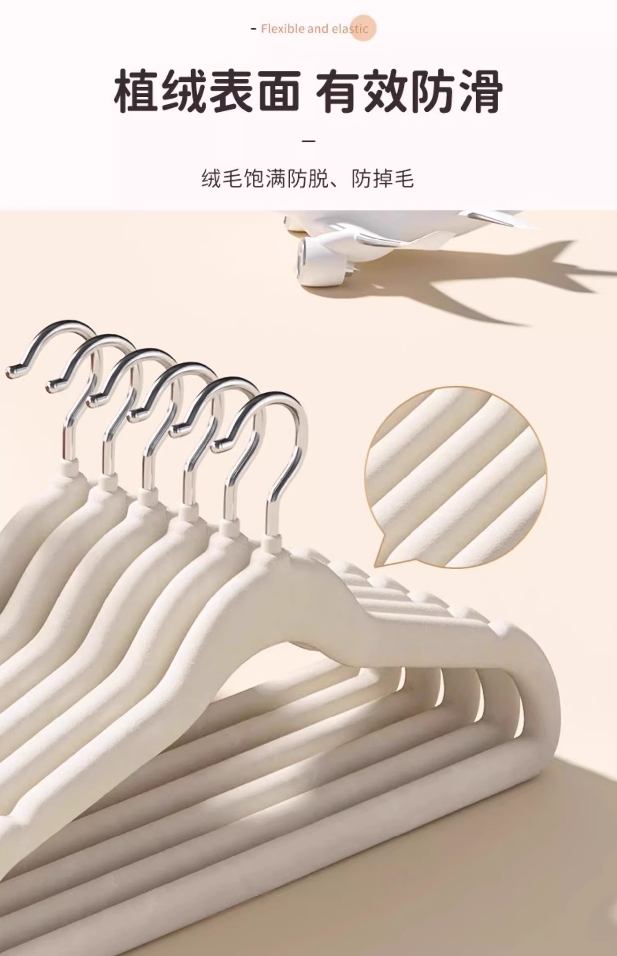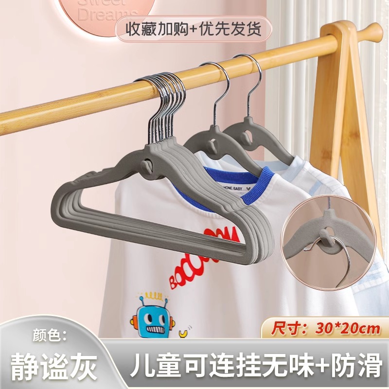 걸려있는 어린이 플록킹 행거 콜래터의 특수 미끄럼 방지 어깨 트레이스 행거 가정용 옷 걸기스토어 가기