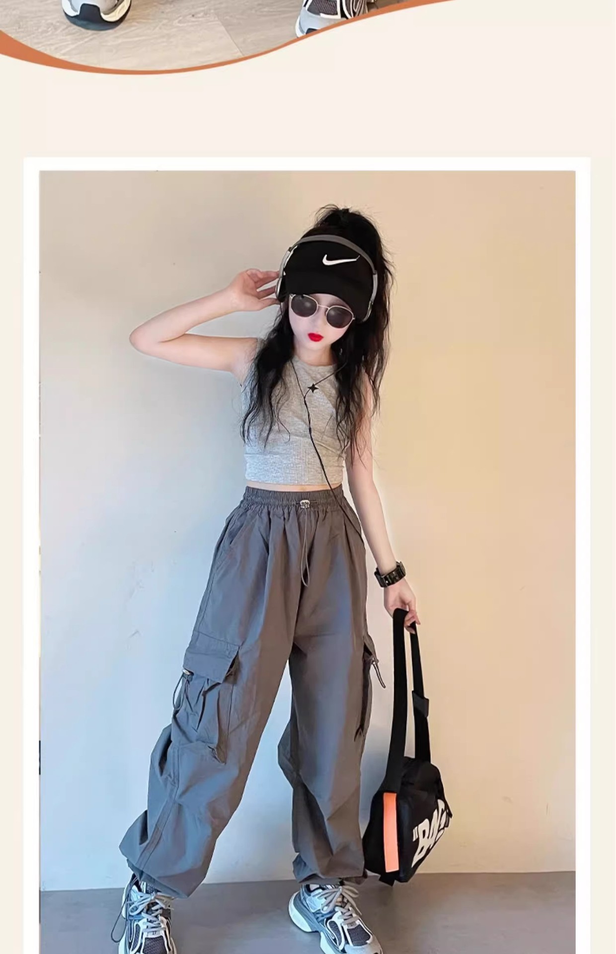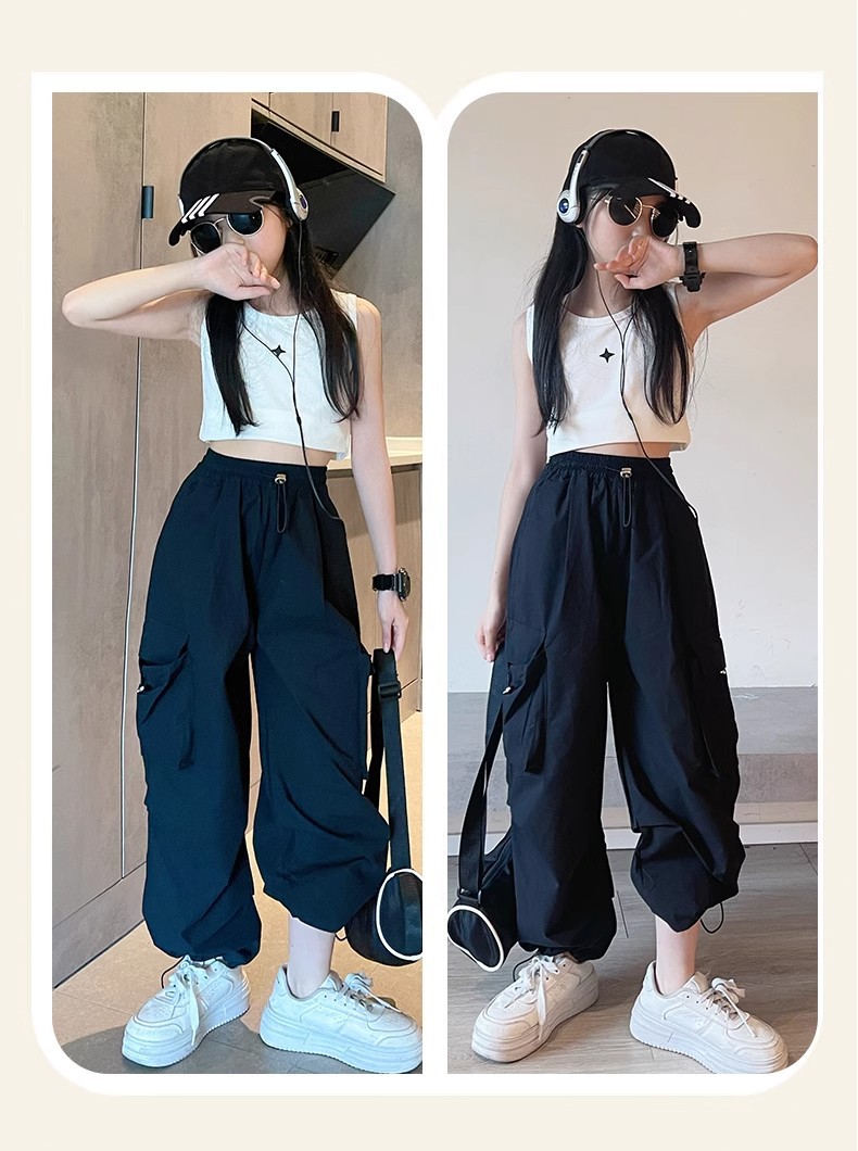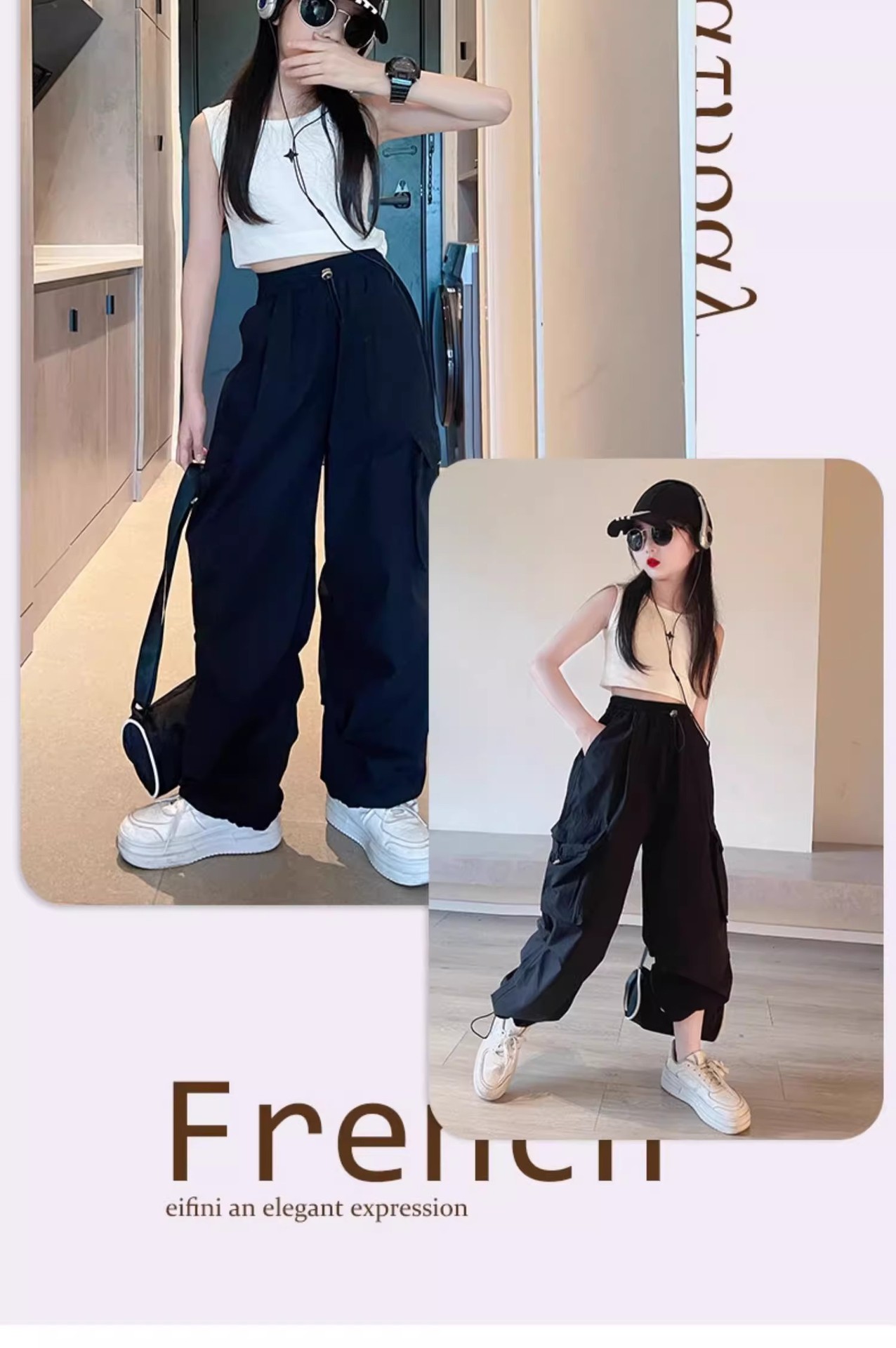 소녀 크레인 바지 여름 2024 새로운 아동복 어린이 넓은 다리 바지 얇은 소녀 큰 어린이 다리 바지 여름 착용스토어 가기