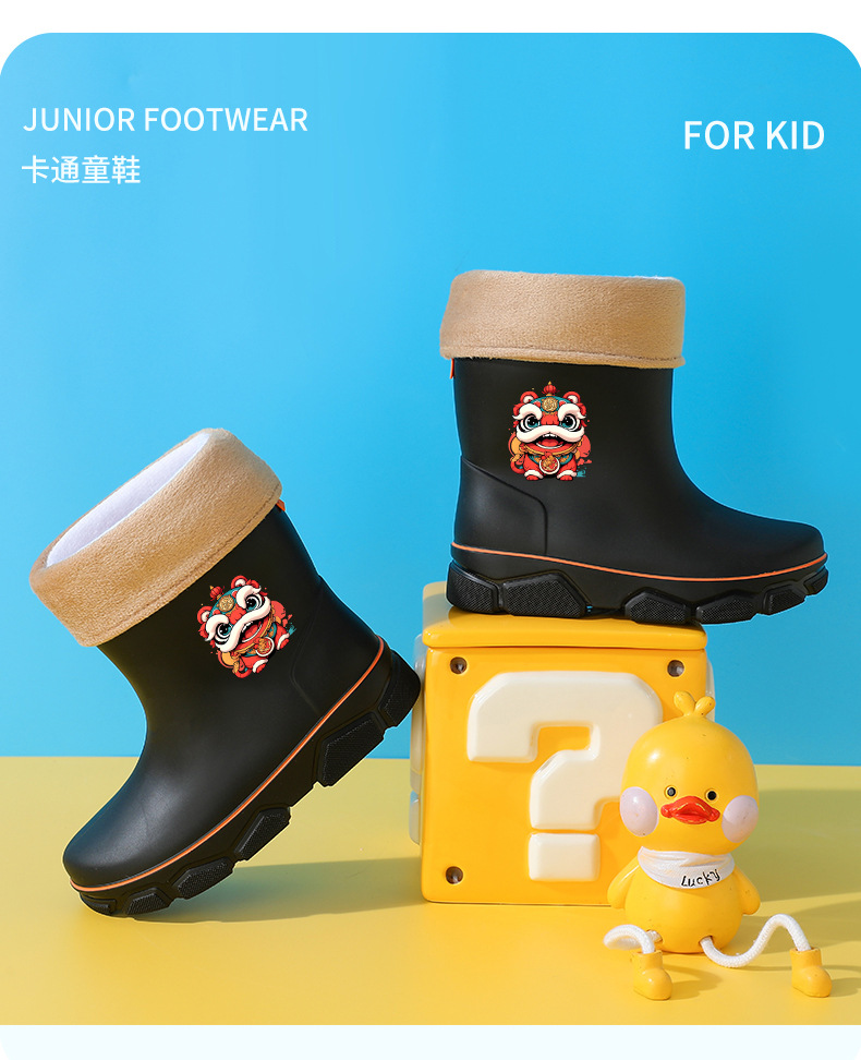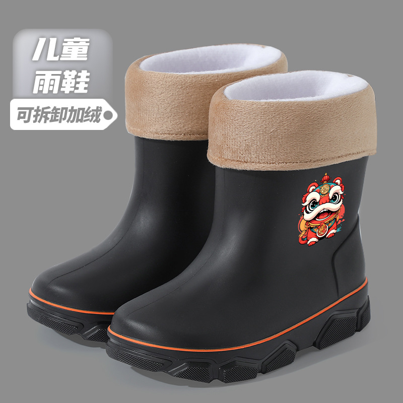 어린이 장화 2024 새로운 물 부츠 소년 미끄럼 방지 어린이 장화 소녀 방수 기모 물 신발 소년 튜브스토어 가기
