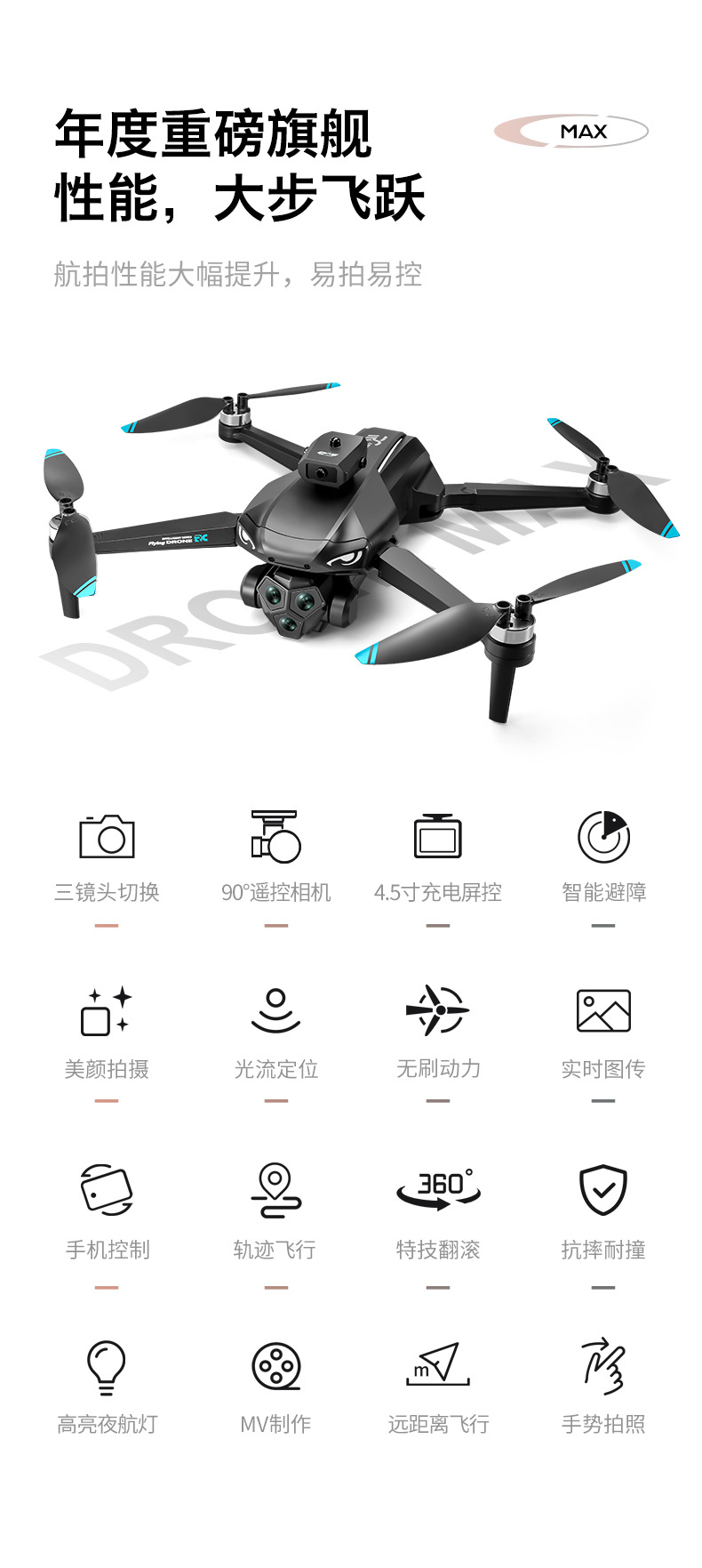 대형 스크린 원격 제어 UAV 지능형 장애물 회피 HD 항공 사진 브러시리스 모터 원격 제어 항공기 쿼드 콥터 국경