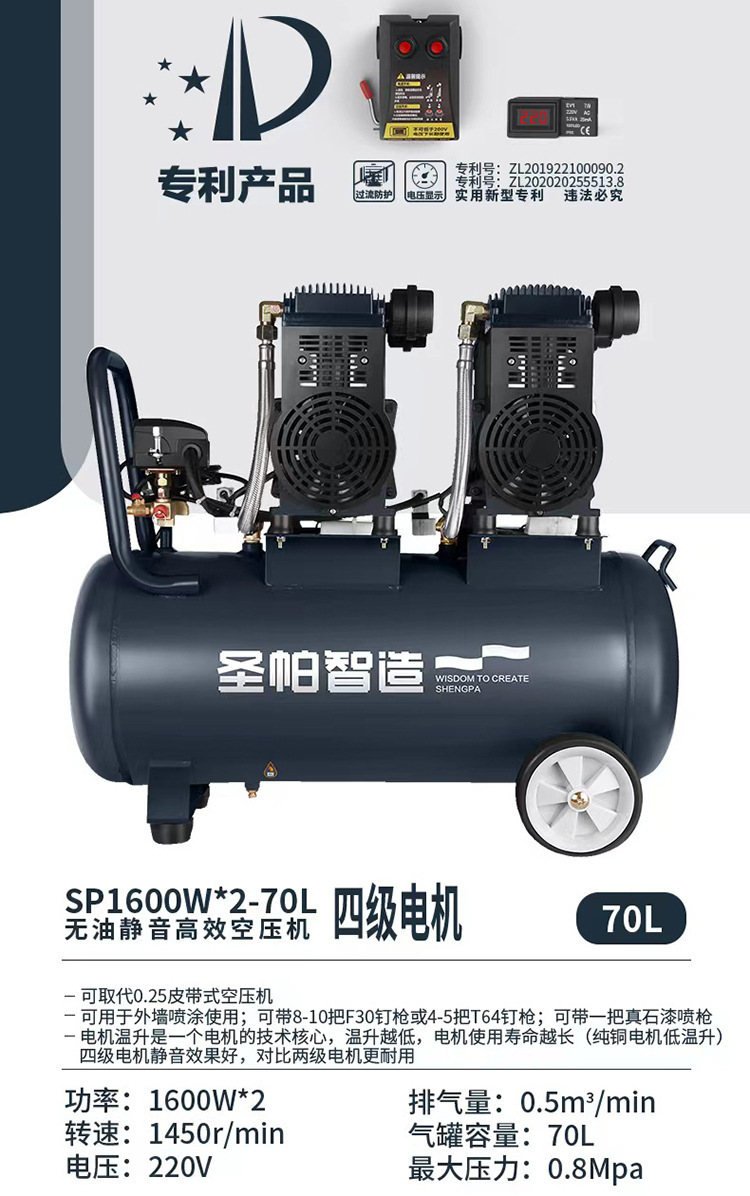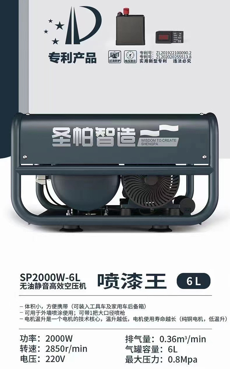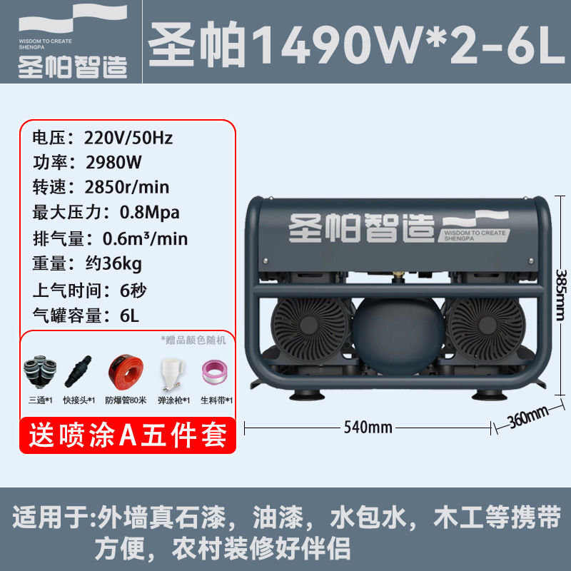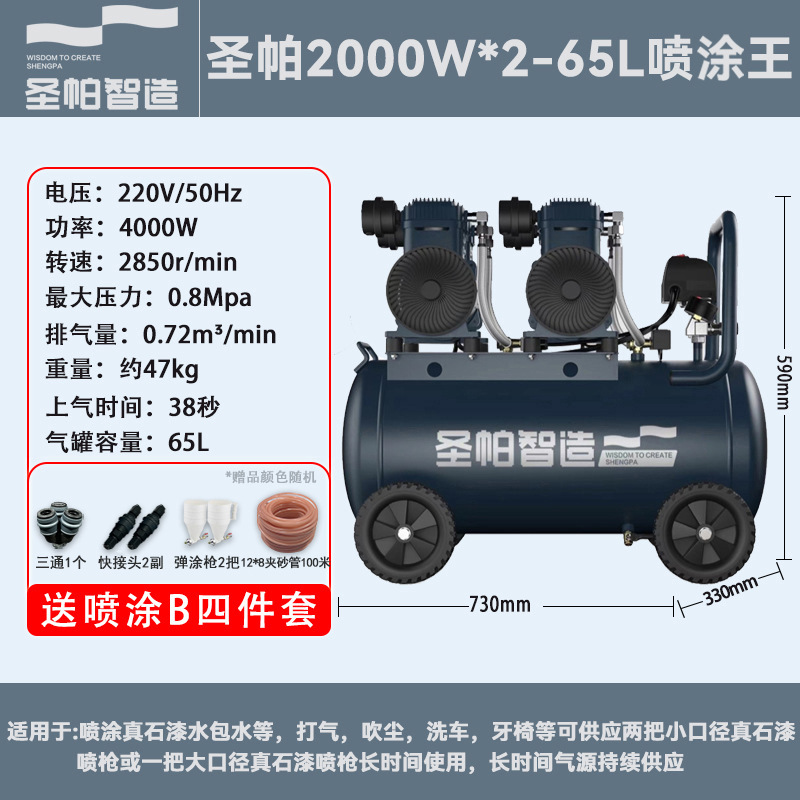 외부 벽 그림 유성없는 공기 압축기 65L 공기 펌프 그림 실제 돌 페인트 특수 6L 음소거 2000W 작은 벽돌스토어 가기