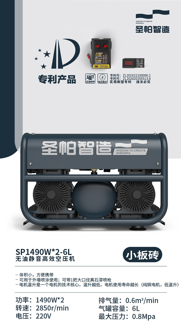 외부 벽 그림 유성없는 공기 압축기 65L 공기 펌프 그림 실제 돌 페인트 특수 6L 음소거 2000W 작은 벽돌