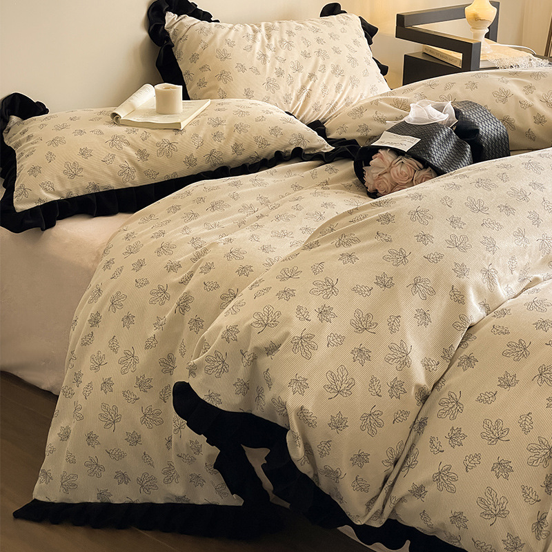 겨울 프랑스 4 피스 세트 기모 공주 바람 코듀로이 밀크 벨벳 퀼트 커버 커버 클래스 모성 및 유아용 침대 시트