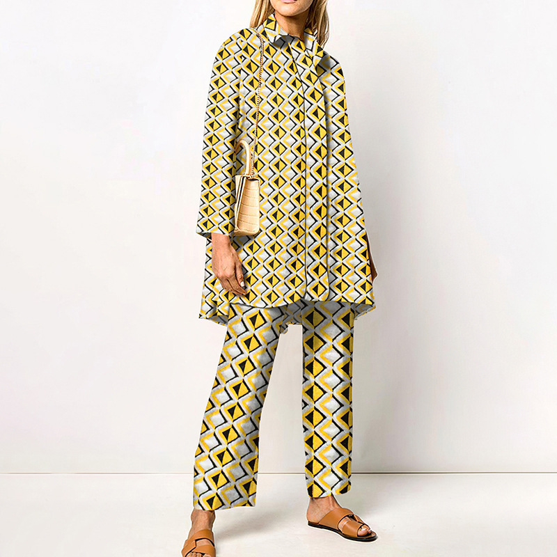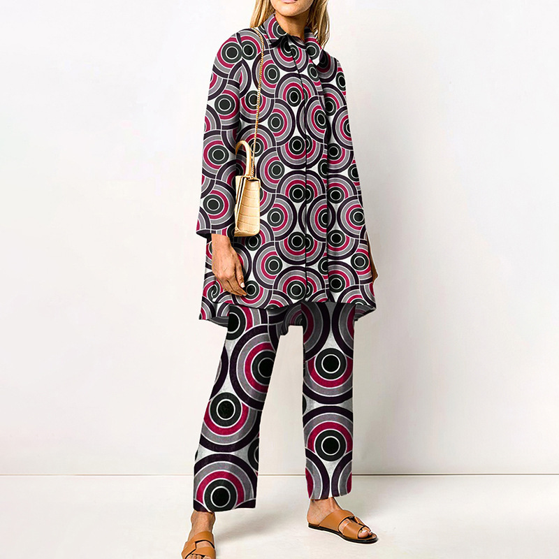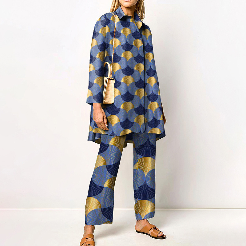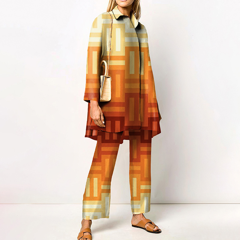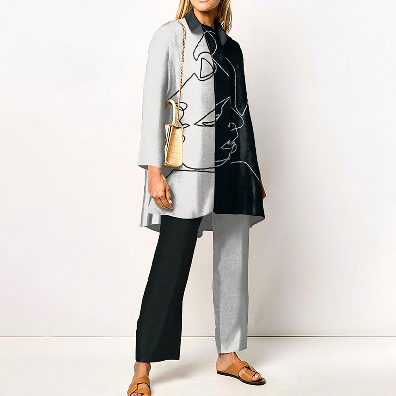 대외 무역 봄과 가을 긴 소매 여성 셔츠 세트 도시 성격 패션 브랜드 3D 디지털 인쇄 캐주얼 여성 의류