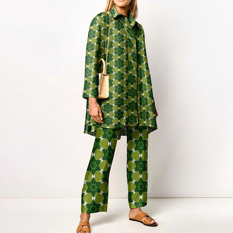 대외 무역 봄과 가을 긴 소매 여성 셔츠 세트 도시 성격 패션 브랜드 3D 디지털 인쇄 캐주얼 여성 의류스토어 가기