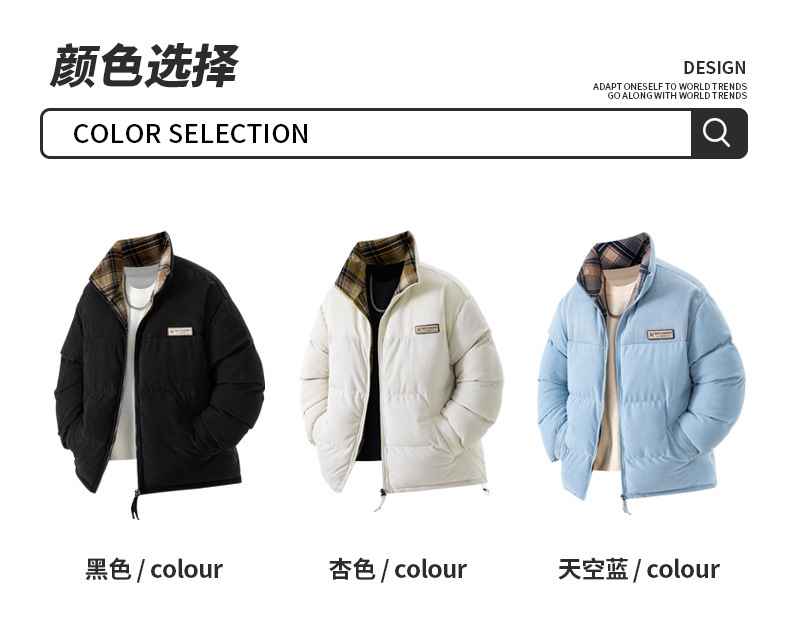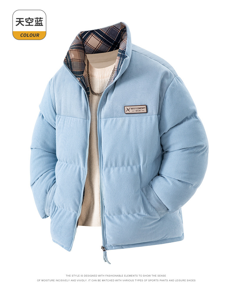 NASA 격자 무늬 양면 칼라 코튼 패딩 코트 남자 겨울 2024 새로운 레트로 루즈 올 매치 따뜻한 코튼 패딩 코트스토어 가기