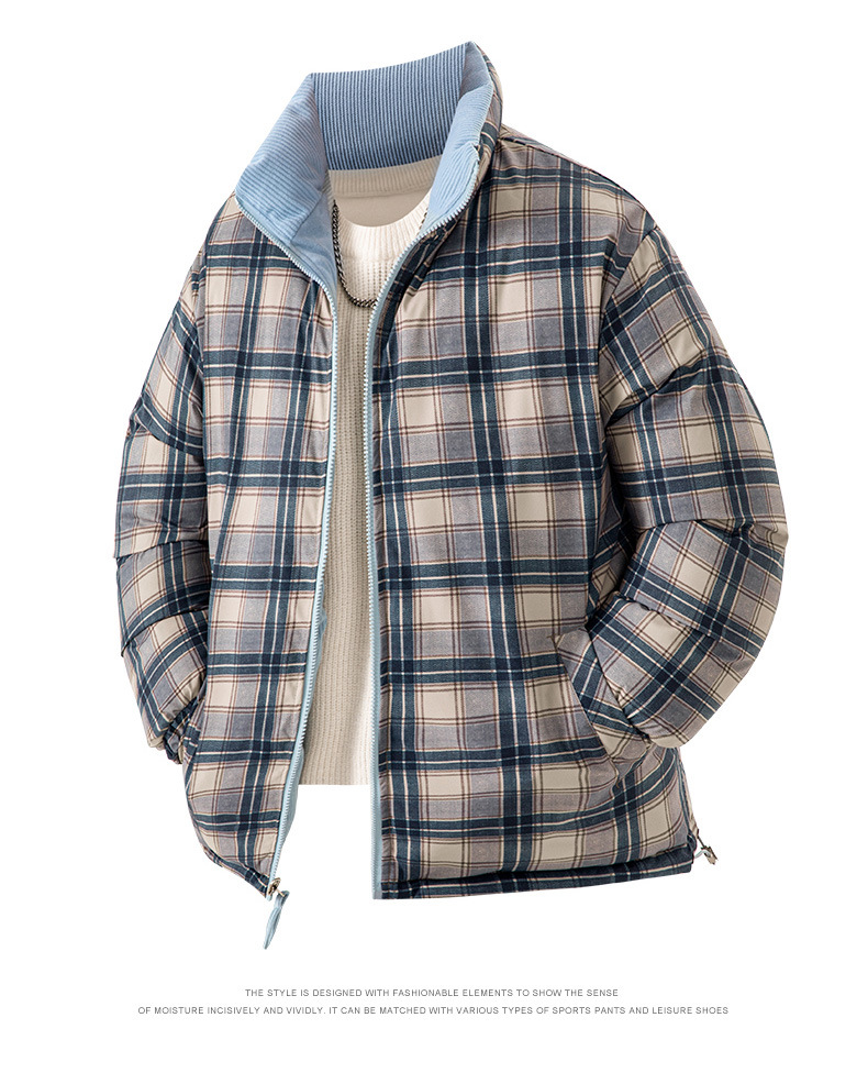 NASA 격자 무늬 양면 칼라 코튼 패딩 코트 남자 겨울 2024 새로운 레트로 루즈 올 매치 따뜻한 코튼 패딩 코트