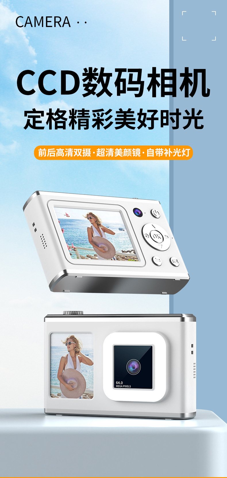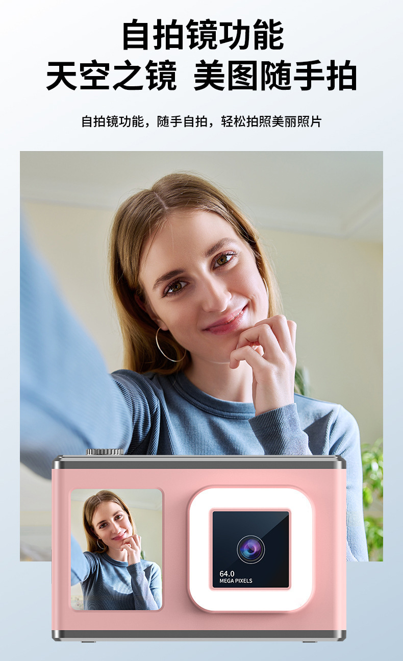 跨境新品数码照相机高清双镜头学生党ccd卡片相机智能补光灯美颜