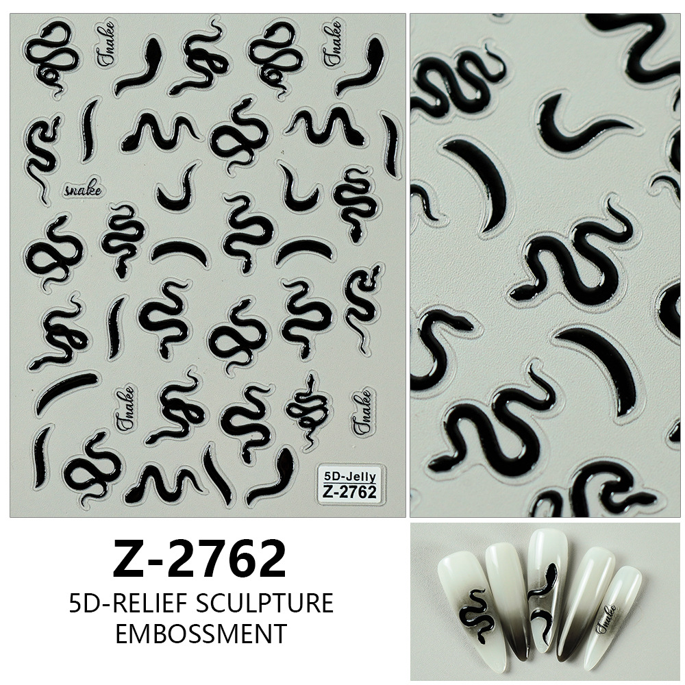 Redanco 새로운 5D 양각 바람 젤리 길조 작은 정신 뱀 네일 스티커 스테레오 네일 스티커 Z-2763스토어 가기