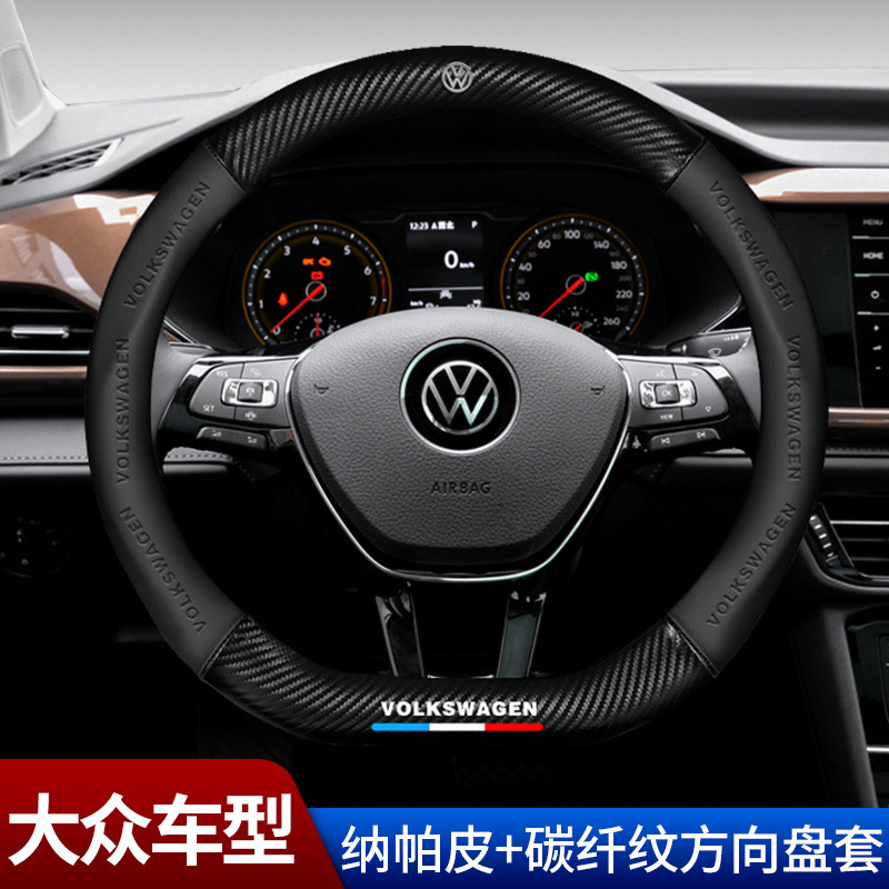 폭스 바겐 시리즈 탄소 섬유 핸들 바 커버에 적합 5D 양각 로고 자동차 로고 전기 자동차 핸들 수정 제품 국경 간스토어 가기
