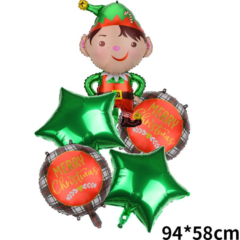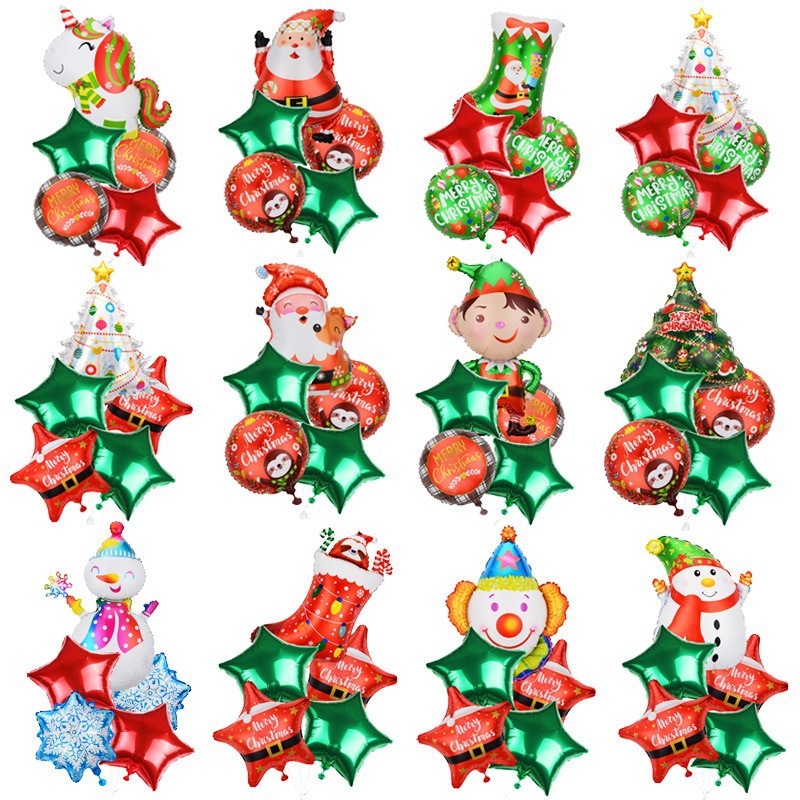 국경 간 산타 클로스 빨간색과 녹색 5 조각 풍선 크리스마스 트리 눈사람 목발 휴일 장식 세트 알루미늄 필름 풍선