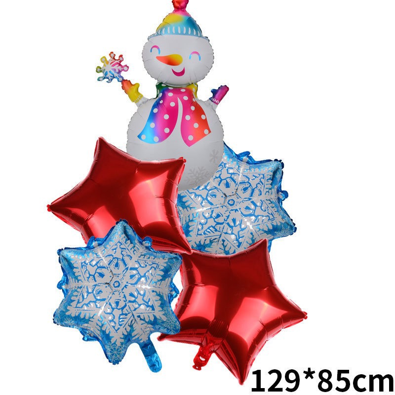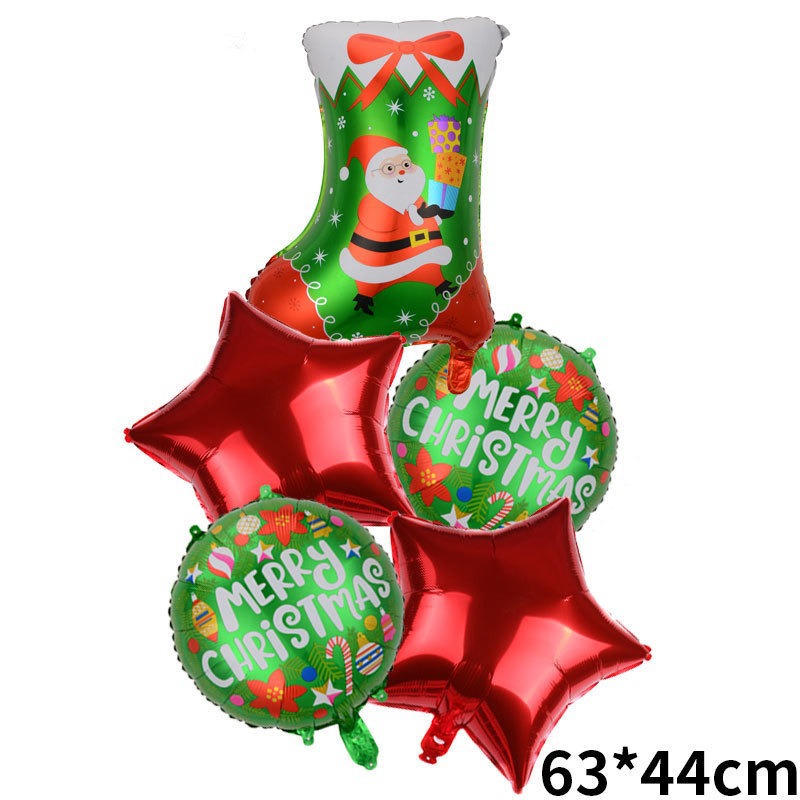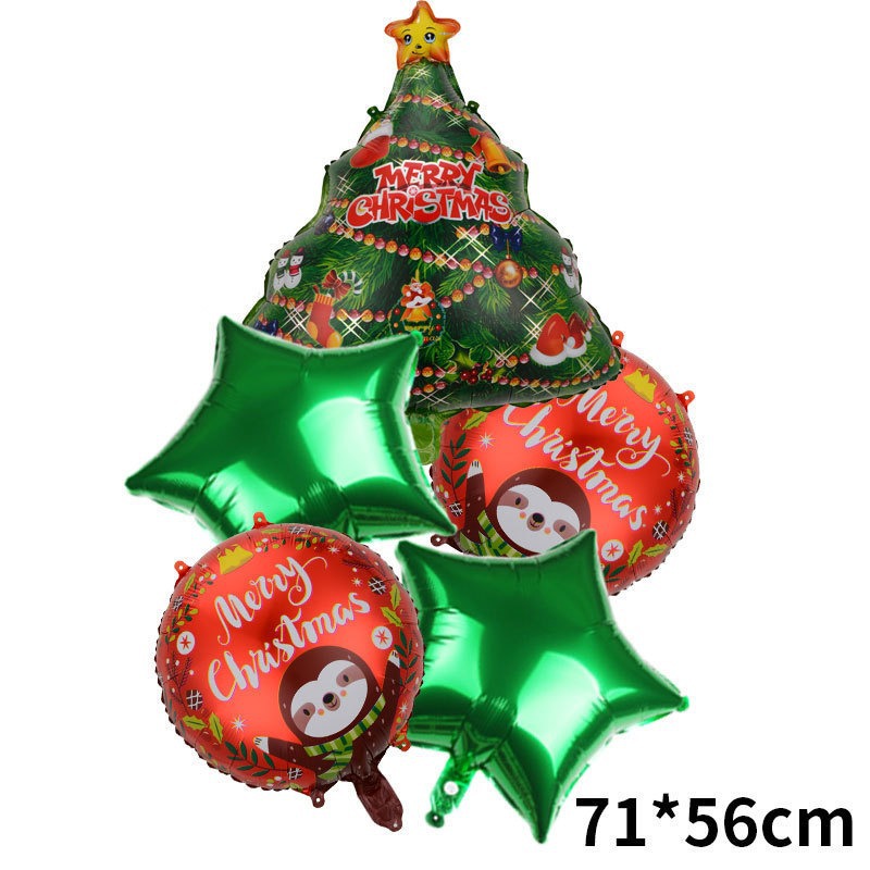 국경 간 산타 클로스 빨간색과 녹색 5 조각 풍선 크리스마스 트리 눈사람 목발 휴일 장식 세트 알루미늄 필름 풍선스토어 가기