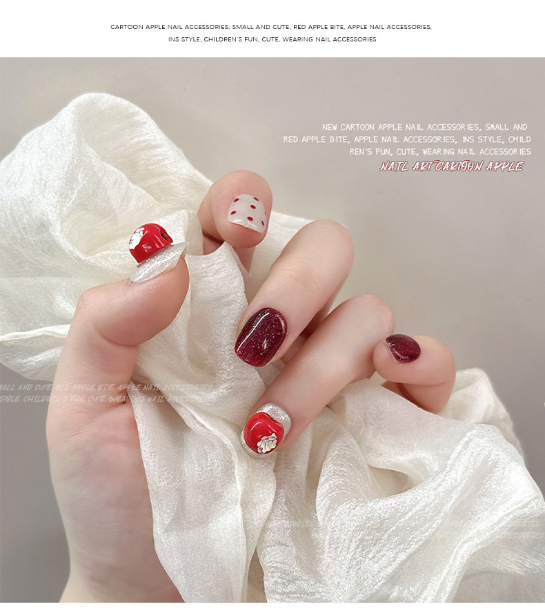 레드 애플 네일 아트 액세서리 새해 귀여운 만화 절묘한 네일 네일 다이아몬드 장식 인터넷 축하 폭발 착용 갑옷 액세서리
