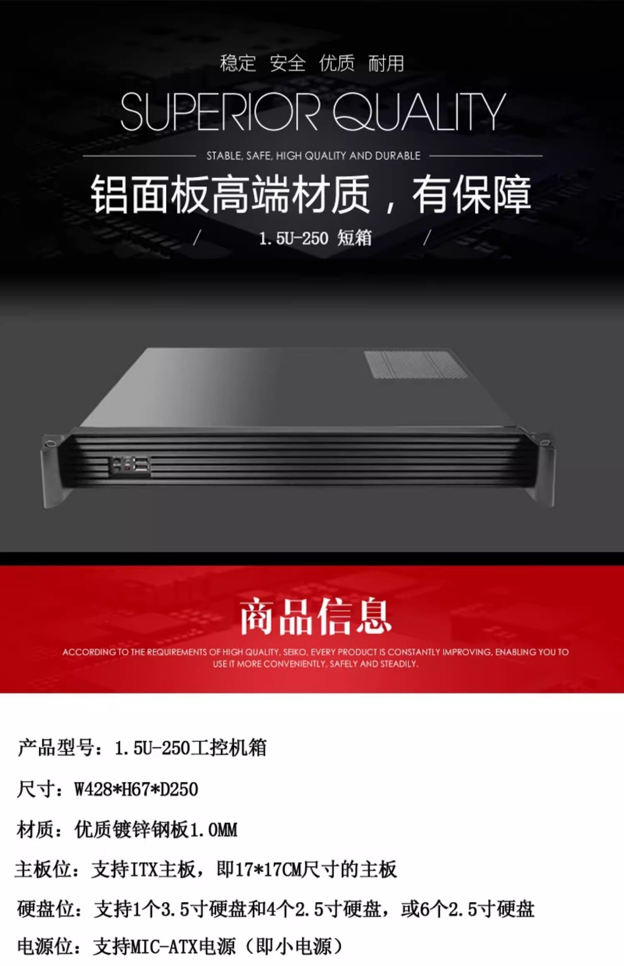 1U 랙 섀시 1.5u 산업 제어 서버 섀시 250MM 알루미늄 패널 짧은 섀시 소프트 라우팅 섀시스토어 가기