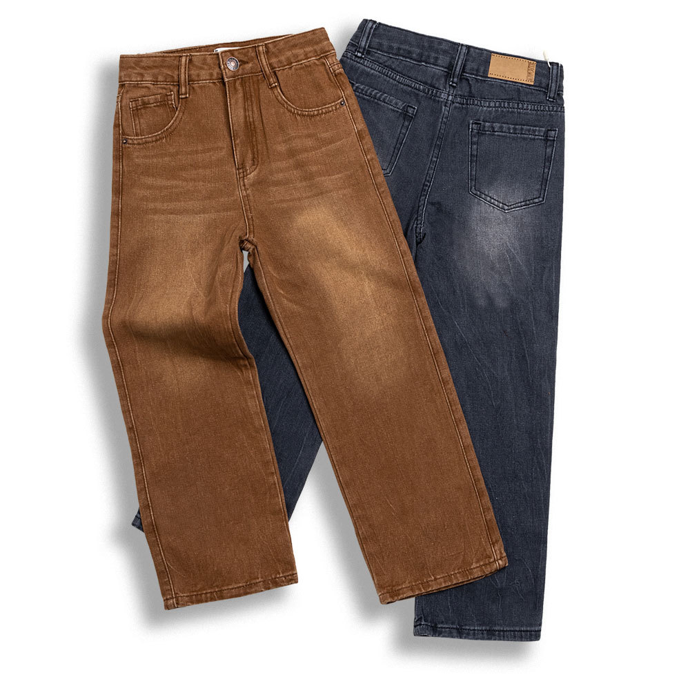 대외 무역 소년 청바지 도매 4 시즌 어린이 스트레이트 바지 십대 느슨한 캐주얼 와이드 레그 청바지