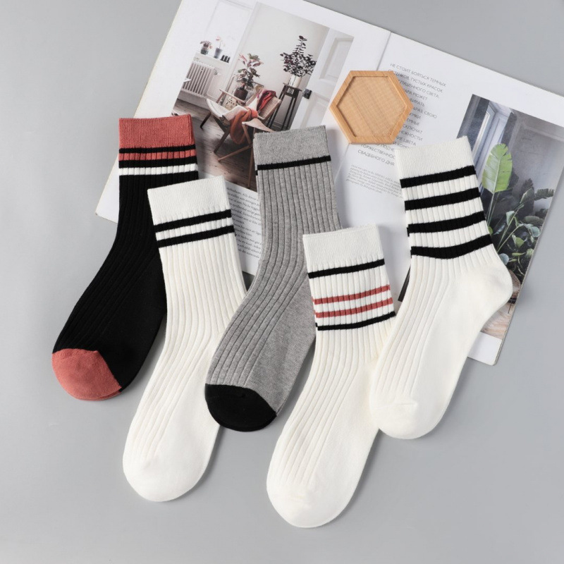 • 0361 솔리드 컬러 세로 스트립 파일 양말
