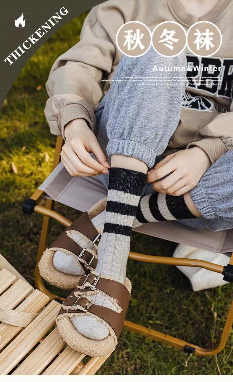 가을과 겨울 여성의 캐주얼 빈티지 스트라이프 따뜻한 모조 양모 스타킹 포장 된 양말 여성용 양말 나사 평행 바스토어 가기