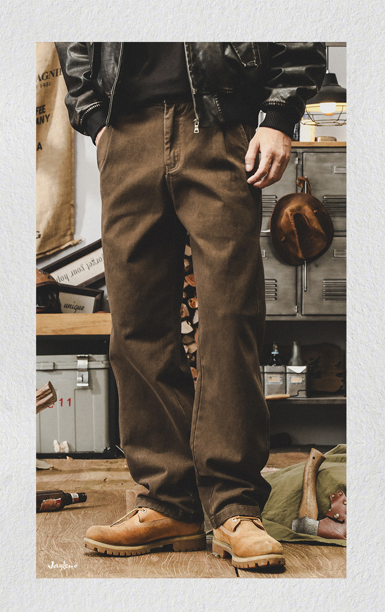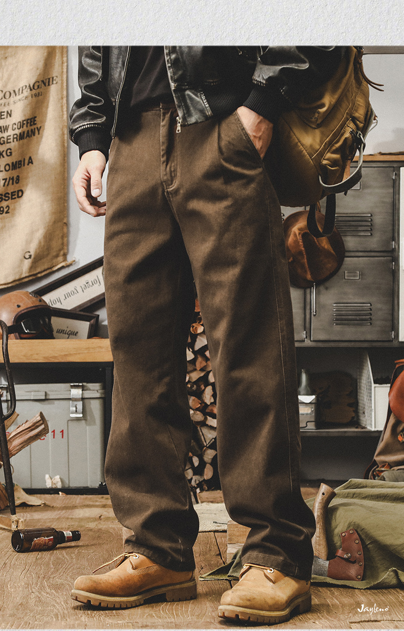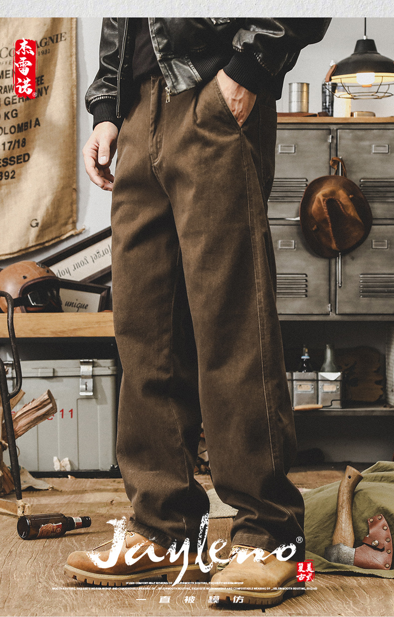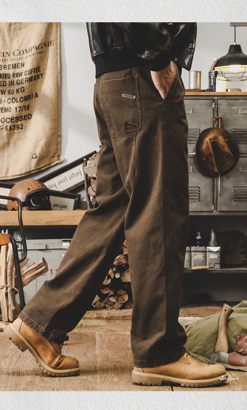 미국 복고풍 300g 무거운 작업 바지 남성 가을 조수 브랜드 튀김 세척 느슨한 스트레이트 바지 남성 캐주얼 바지스토어 가기
