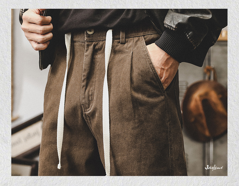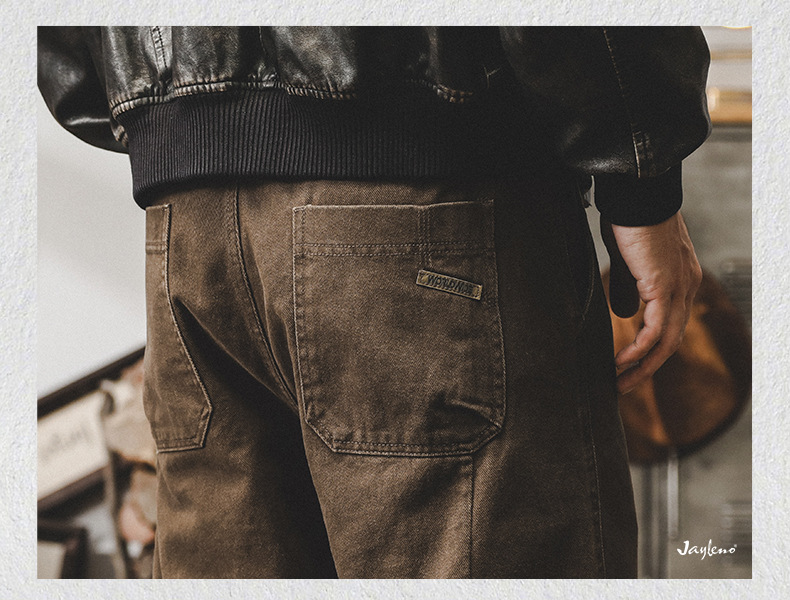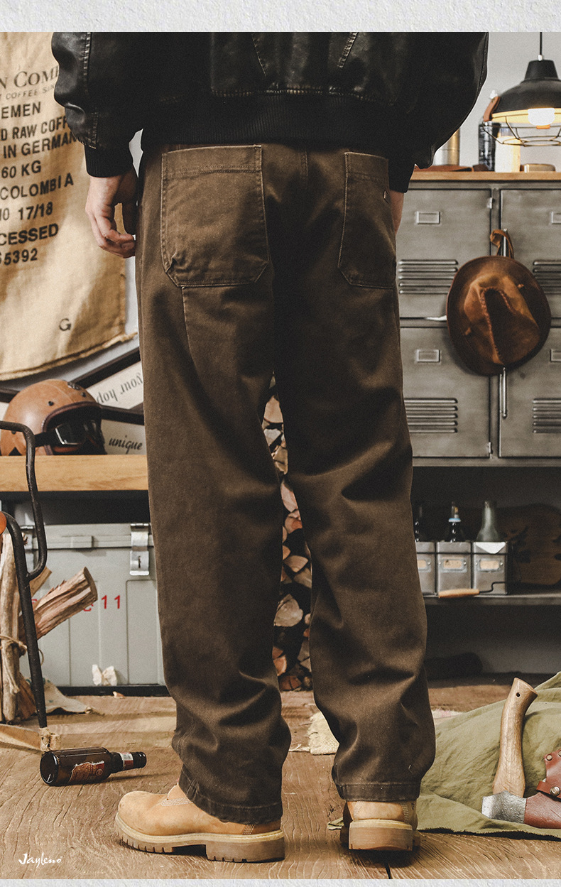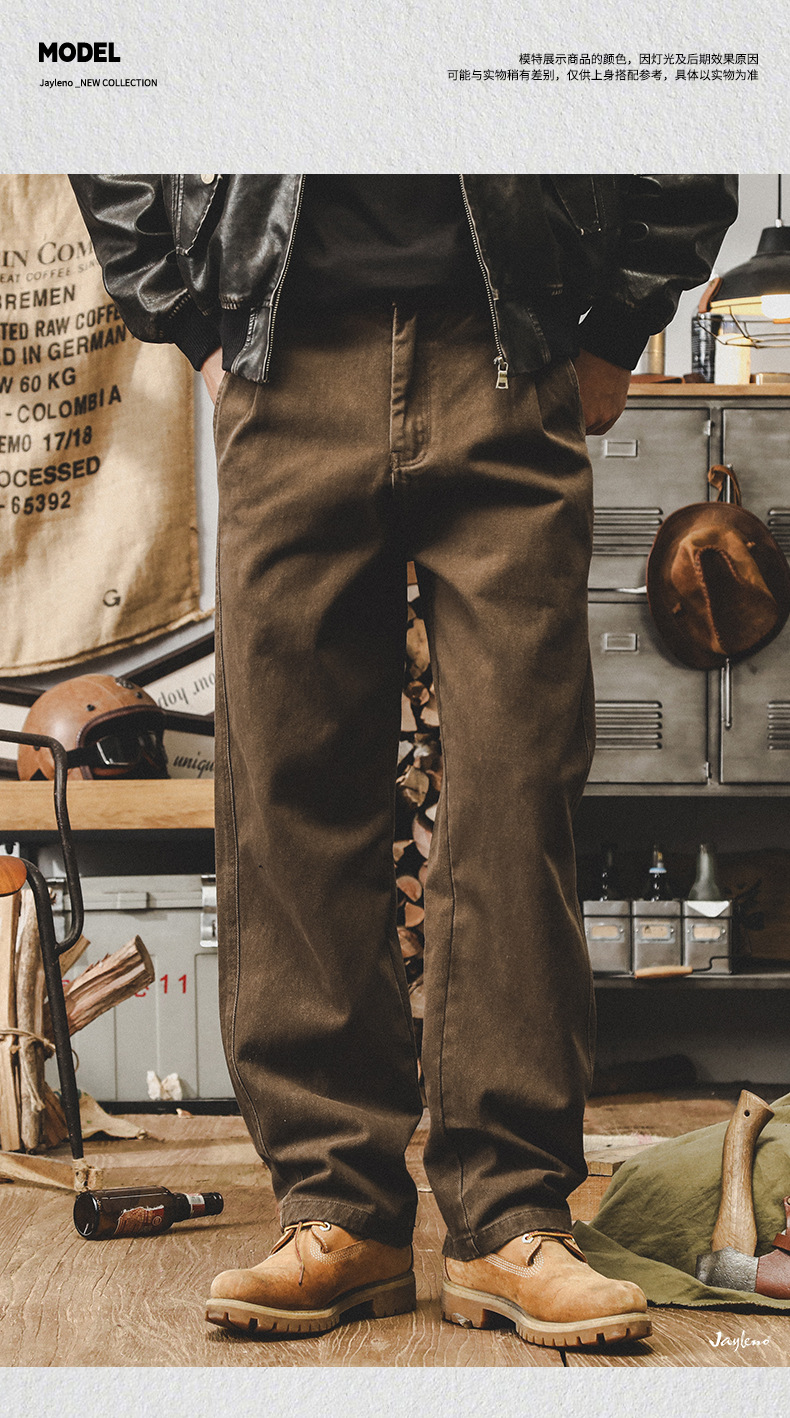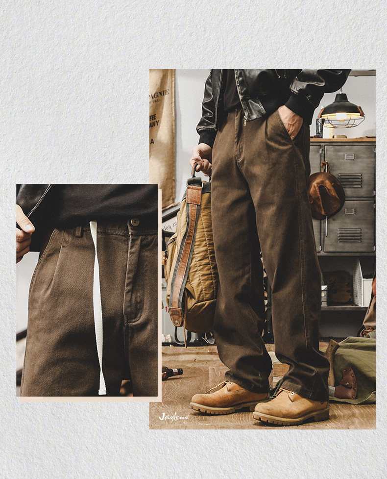 미국 복고풍 300g 무거운 작업 바지 남성 가을 조수 브랜드 튀김 세척 느슨한 스트레이트 바지 남성 캐주얼 바지스토어 가기