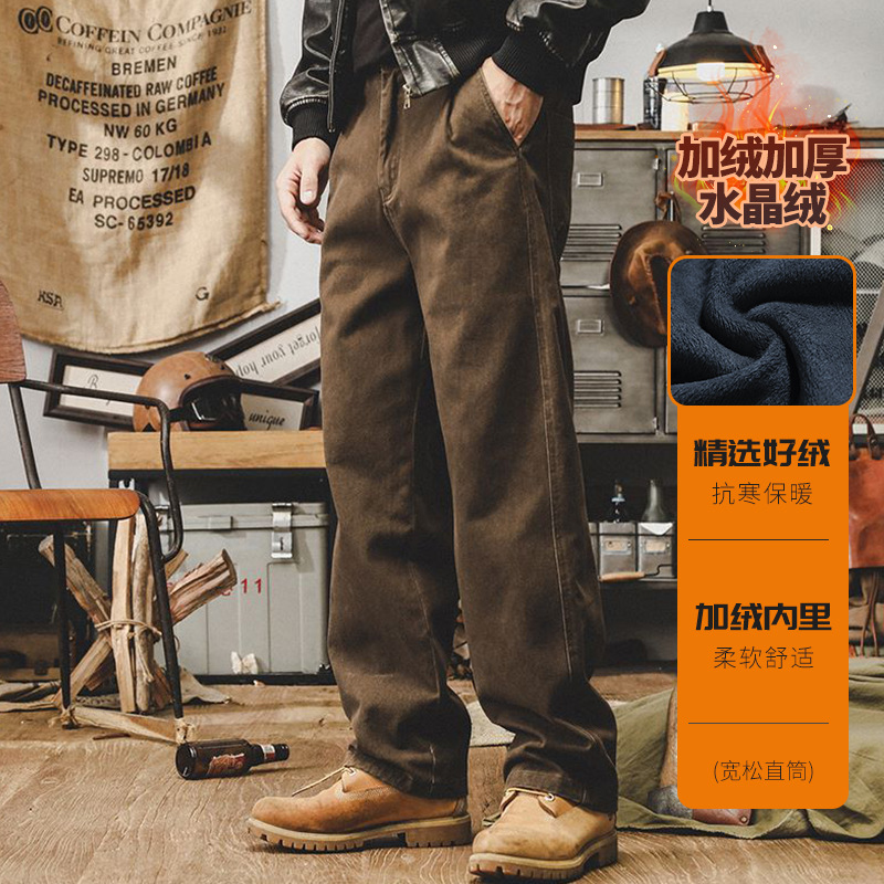 미국 복고풍 300g 무거운 작업 바지 남성 가을 조수 브랜드 튀김 세척 느슨한 스트레이트 바지 남성 캐주얼 바지