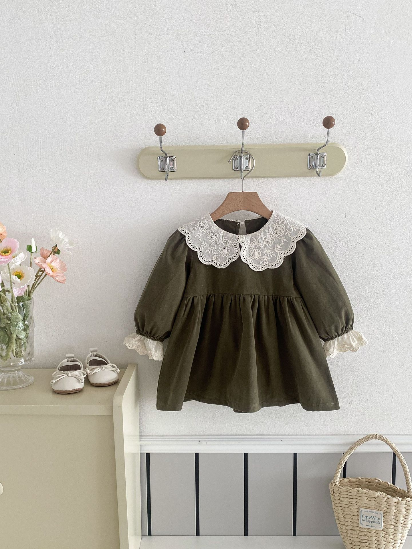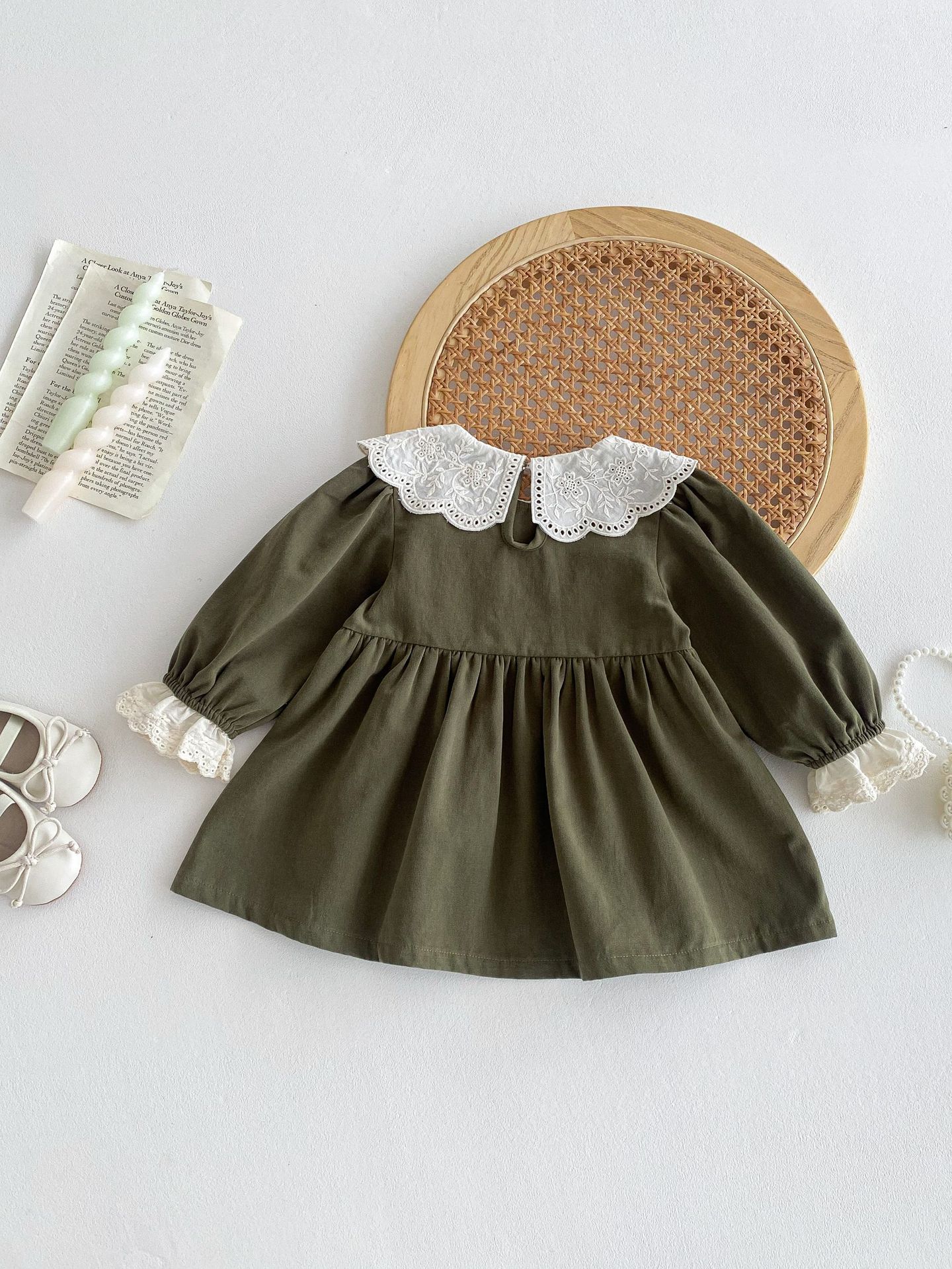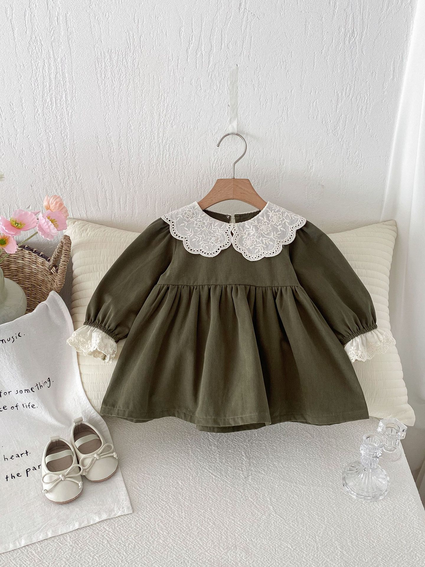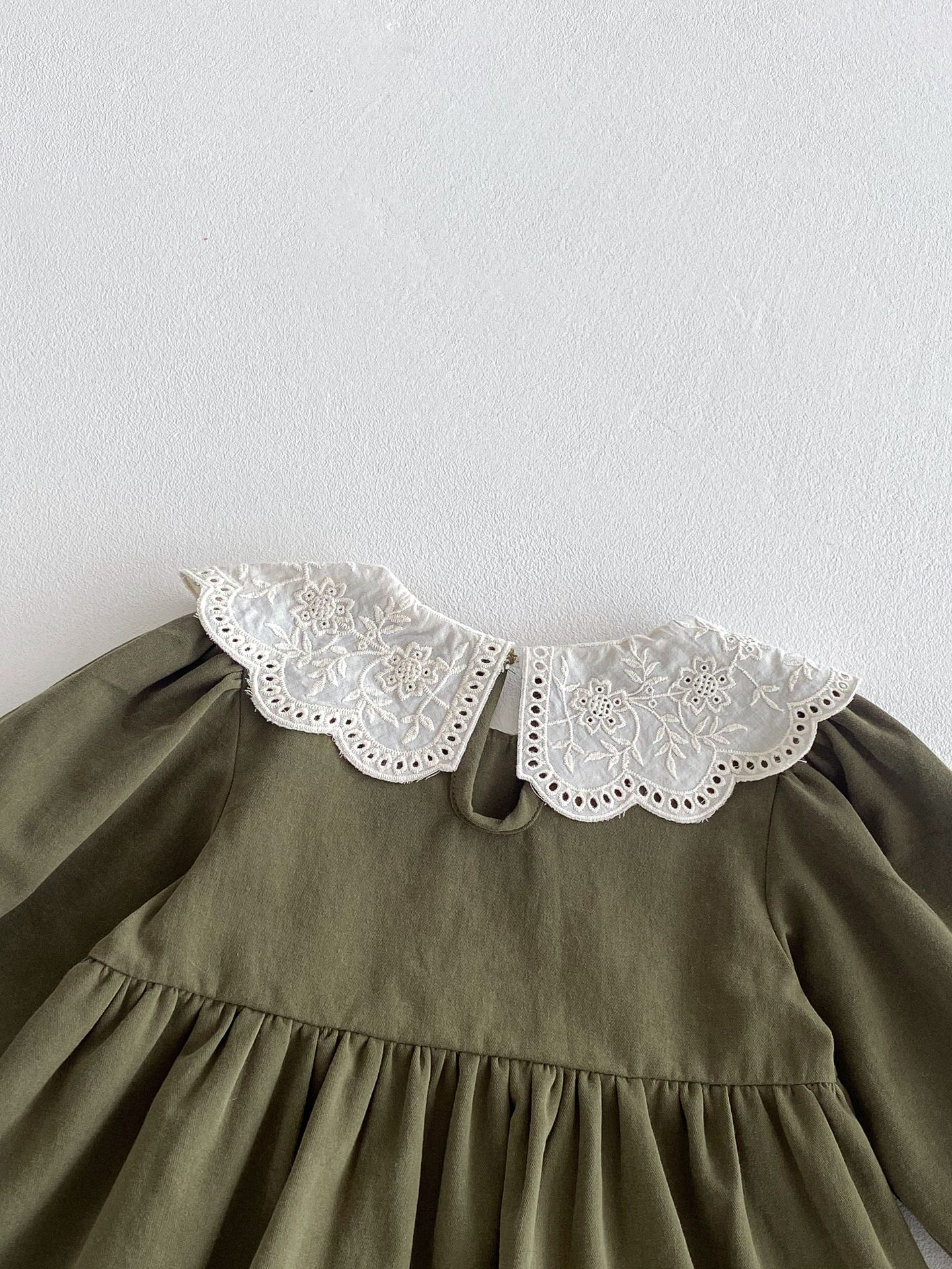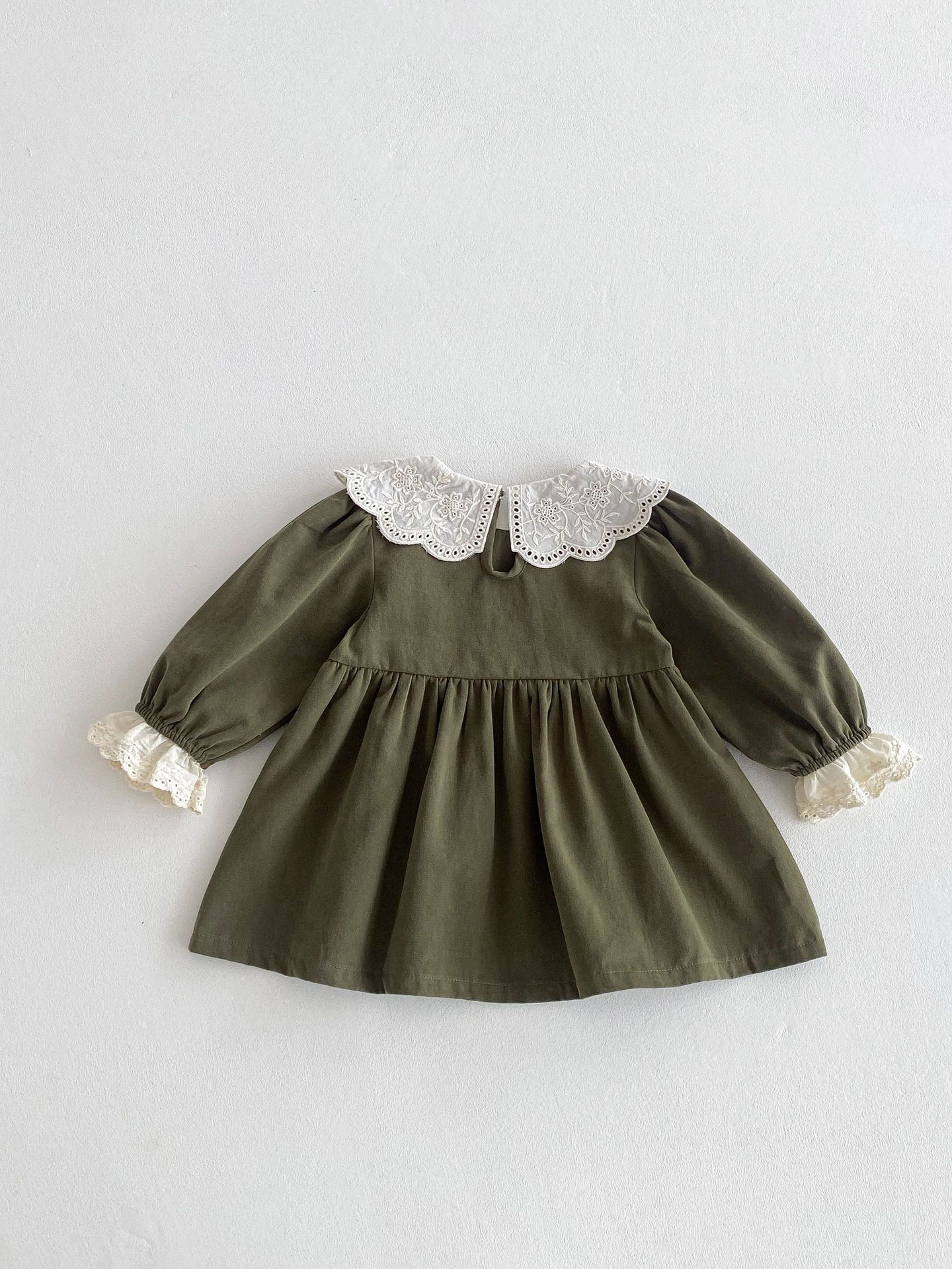 소녀의 봄 원피스 원피스 한국 스타일 어린이 세련된 봄과 가을 레이스 칼라 옷깃 소녀 공주 외출 스커트스토어 가기