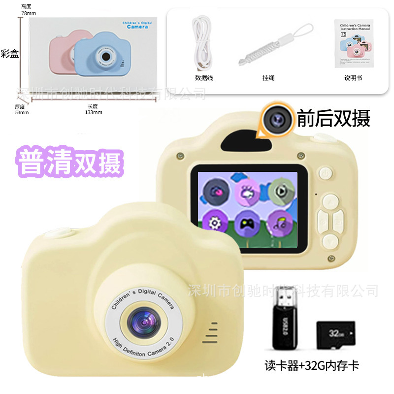 • A3 HD 듀얼 카메라-노란색+32G 메모리 카드+카드 리더기