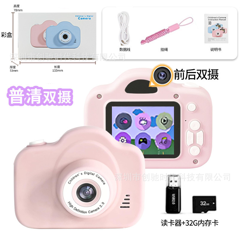 • A3 HD 듀얼 카메라-핑크+32G 메모리 카드+카드 리더기