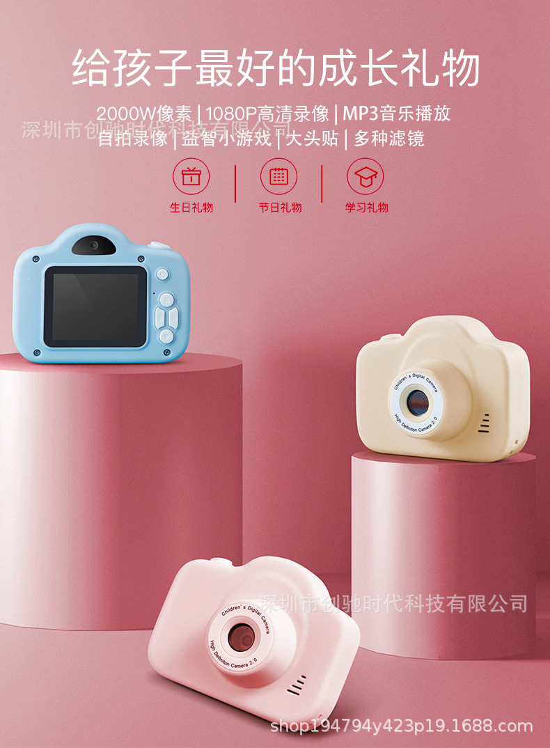 A3 어린이 디지털 소형 카메라 학생 만화 4000W HD 2.0 인치 미니 카메라 작은 SLR 선물스토어 가기