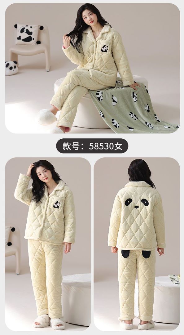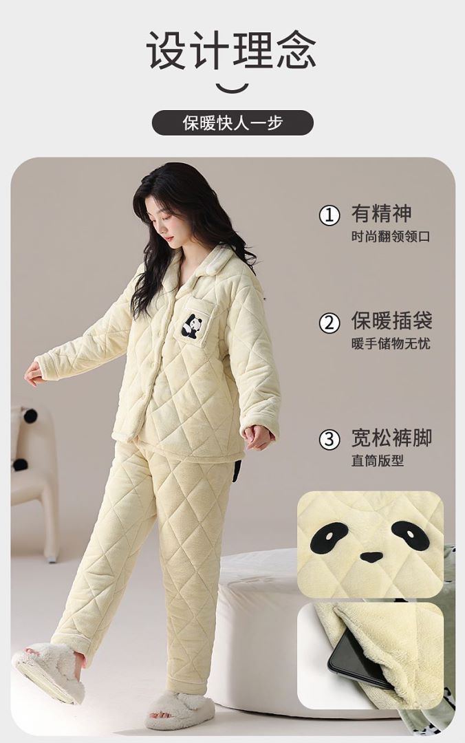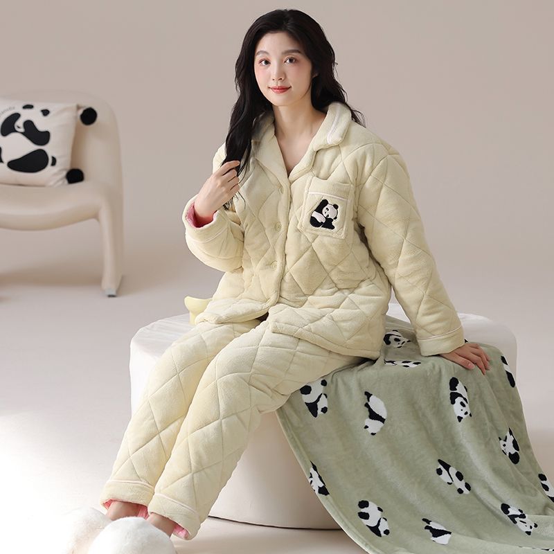 잠옷 여성의 겨울 두꺼운 기모 3 층 퀼트 카디건 따뜻한 홈 옷 여성면 패딩 자켓을 세트