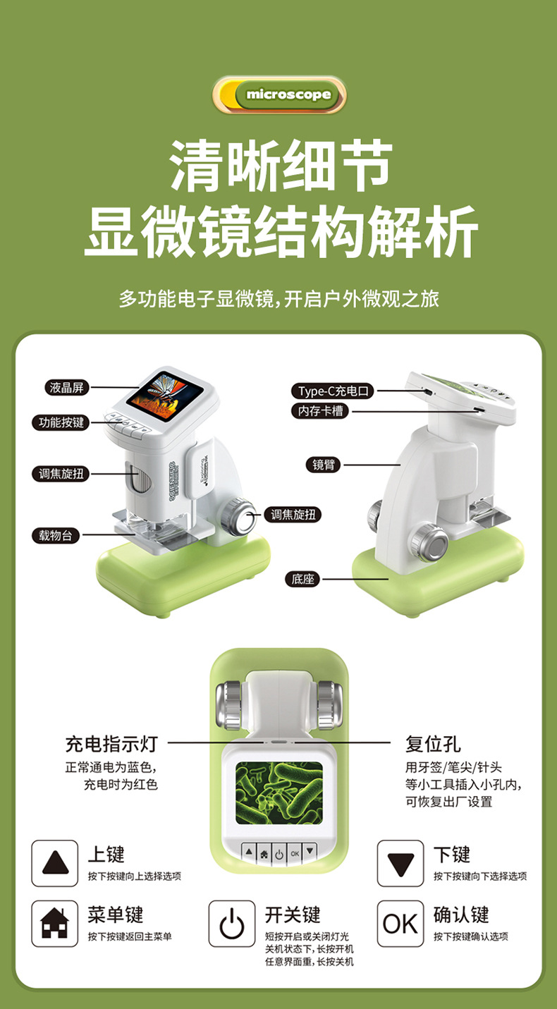 지능형 디지털 현미경 전자 디스플레이 휴대용 과학 및 교육 HD 셀 진드기 학생 과학 및 교육 장난감스토어 가기