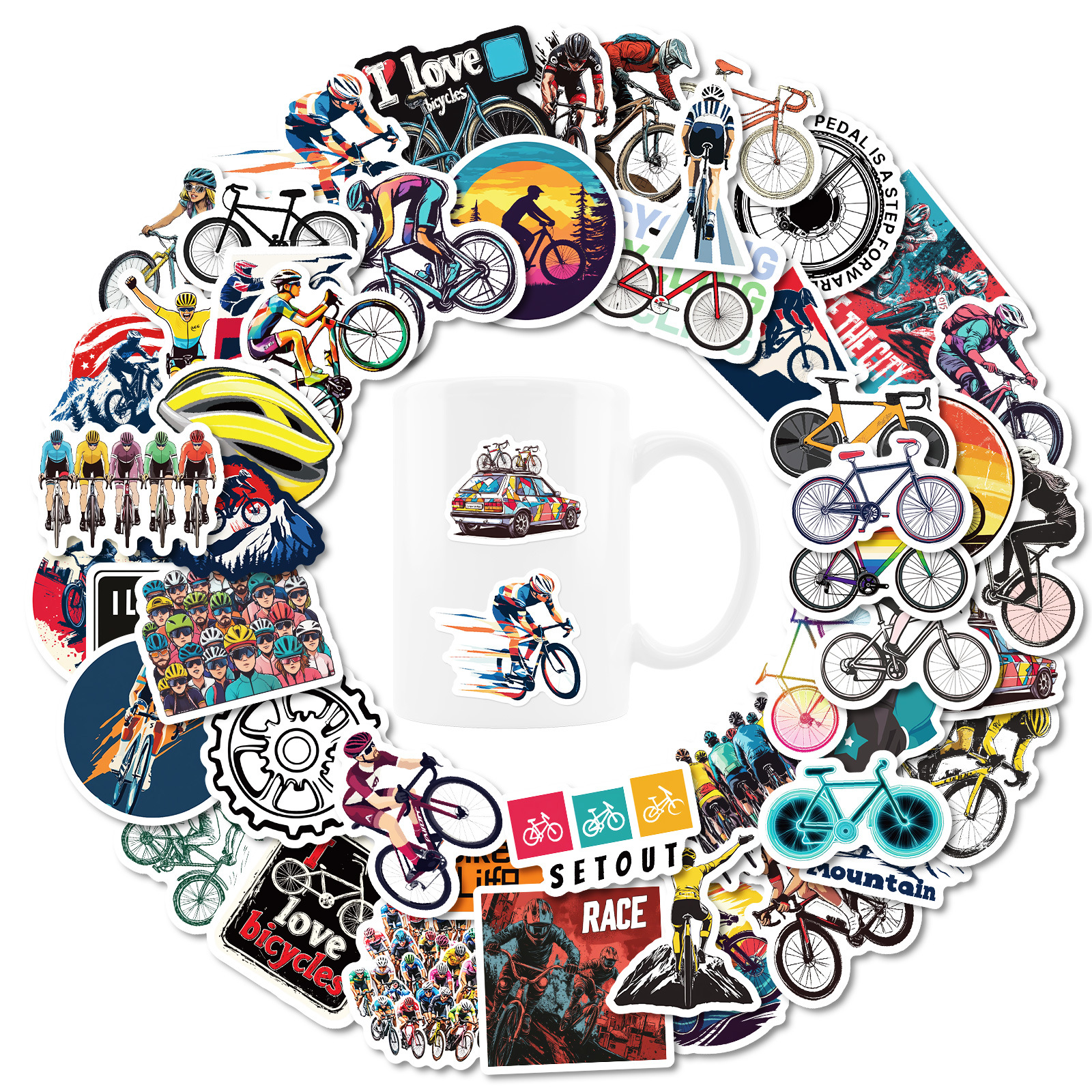 50 창조적 인 경쟁 산악 자전거 스티커 아마존 국경 베스트셀러 낙서 스티커 Diy 스케이트 보드 워터 컵스토어 가기