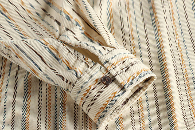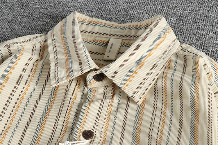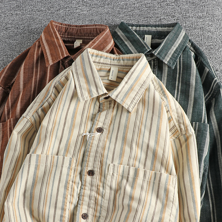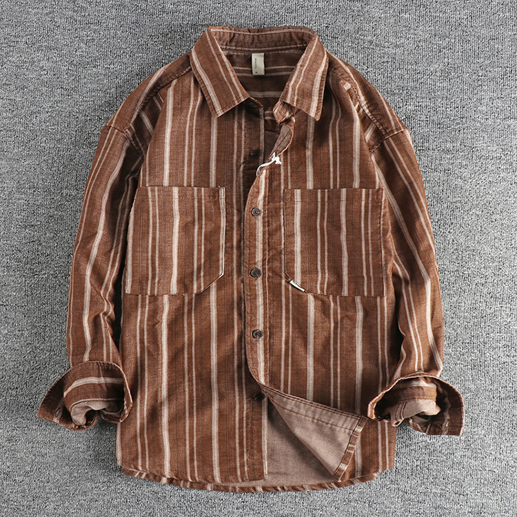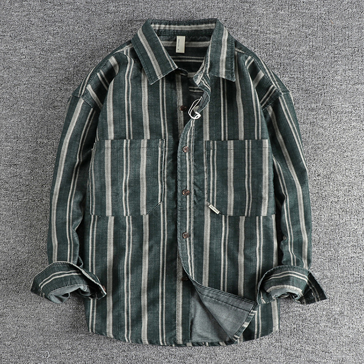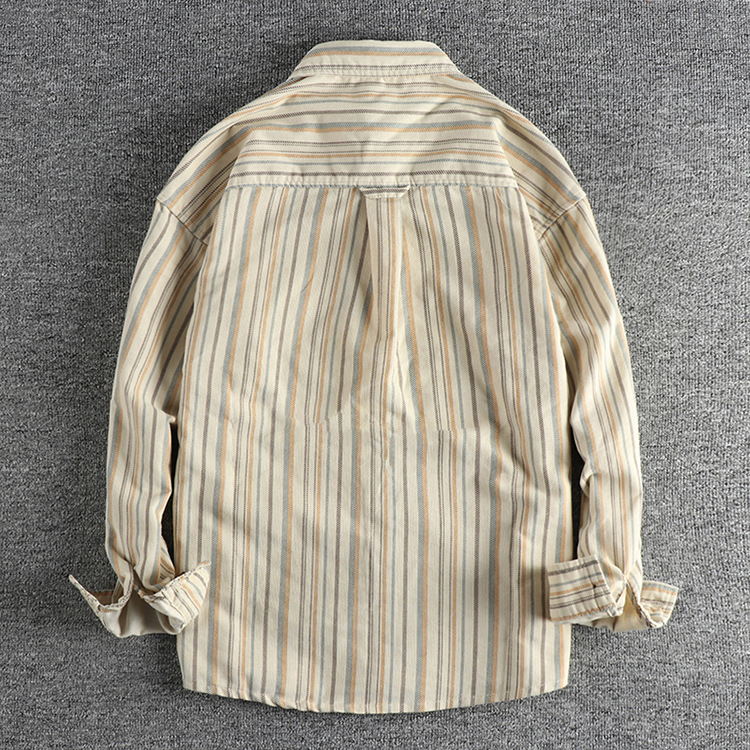 아메리칸 스타일 레트로 세탁 데님 긴 소매 줄무늬 셔츠 매일 봄 가을 패션 인기있는 남성 캐주얼 셔츠스토어 가기
