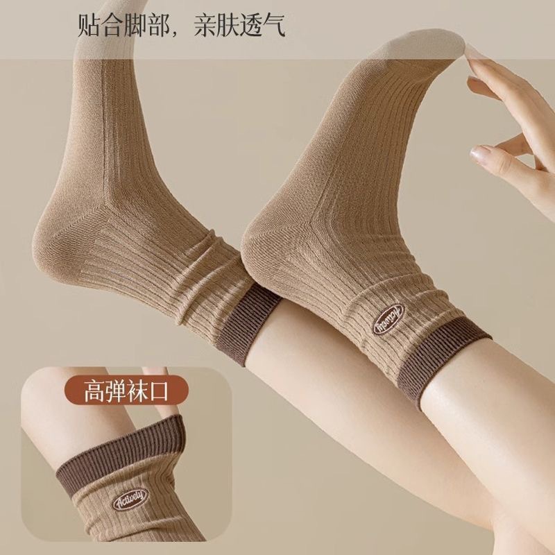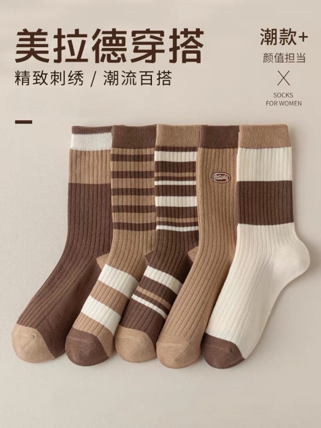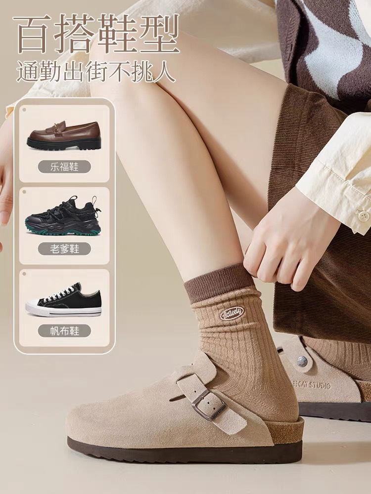 중간 길이의 스타킹 Ins All-match Simple Pile Stockings 학업 스타일 다크 브라운 스타킹 가을 및 겨울 스타킹 어린이 Maillard 색상스토어 가기