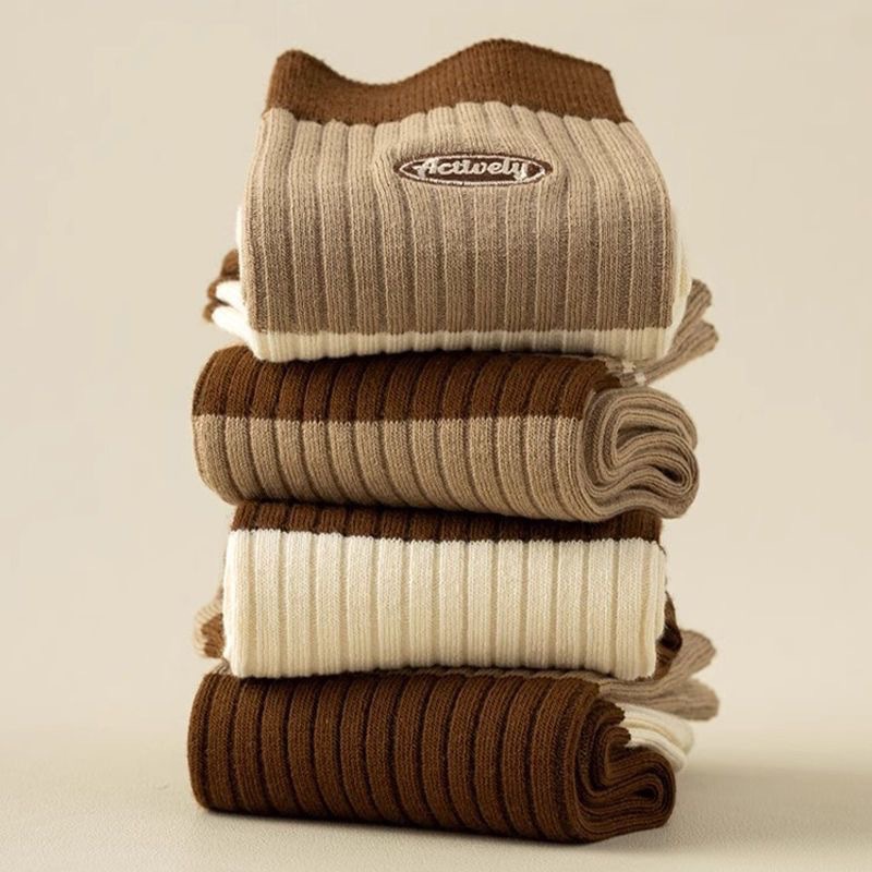중간 길이의 스타킹 Ins All-match Simple Pile Stockings 학업 스타일 다크 브라운 스타킹 가을 및 겨울 스타킹 어린이 Maillard 색상