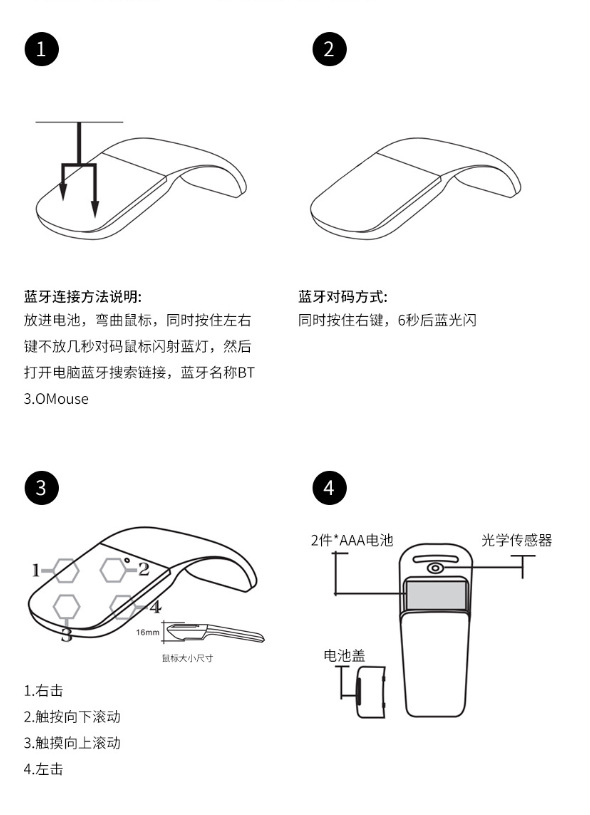 마이크로 소프트 컴퓨터 얇은 4 세대 터치 무선 블루투스 마우스에 대한 공장 도매 접이식 마우스 4.0 음소거