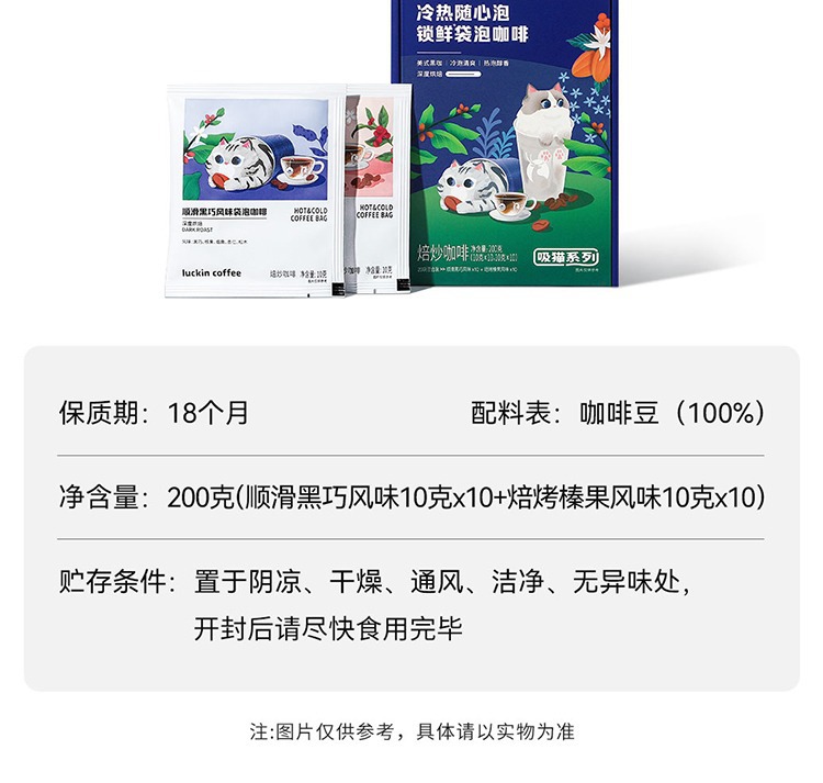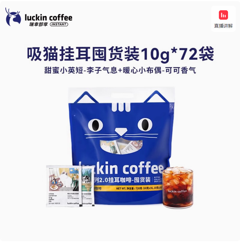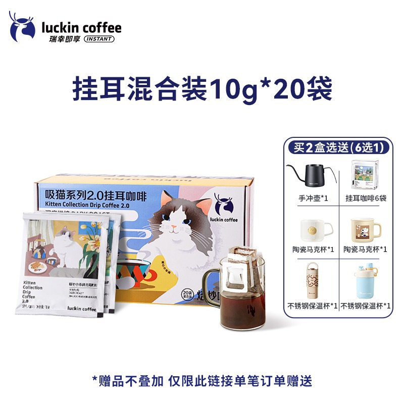 • 루이싱 커피 매달린 귀 커피 흡입 고양이 매달린 귀 스타킹 팩 [혼합 맛] 10g*72 봉지 총 720g
