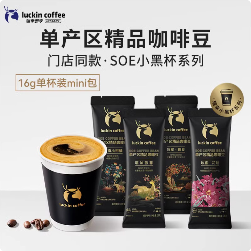 • 루이싱 커피 단일 생산지 프리미엄 커피원두 16g*4봉, 4가지 맛의 커피원두 각 1봉