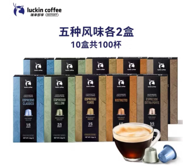 • 루이싱 커피 캡슐 커피 에스프레소 - 5가지 맛 각 2박스 [10박스, 총 100컵]